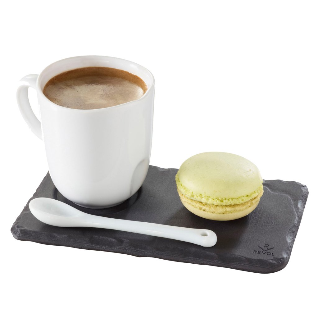 A Basalt kistányér a Revol társaság által gyártott összes espresso és ristretto pohárhoz használható. Ez az egyedi kistányér úgy néz ki, mintha palakőből lenne, a valóságban viszont festett porcelánból készül.