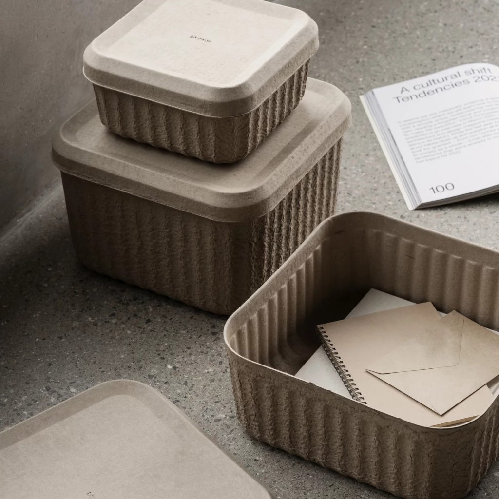 - 100%-ban újrahasznosítható papírpépből készült tárolódobozok