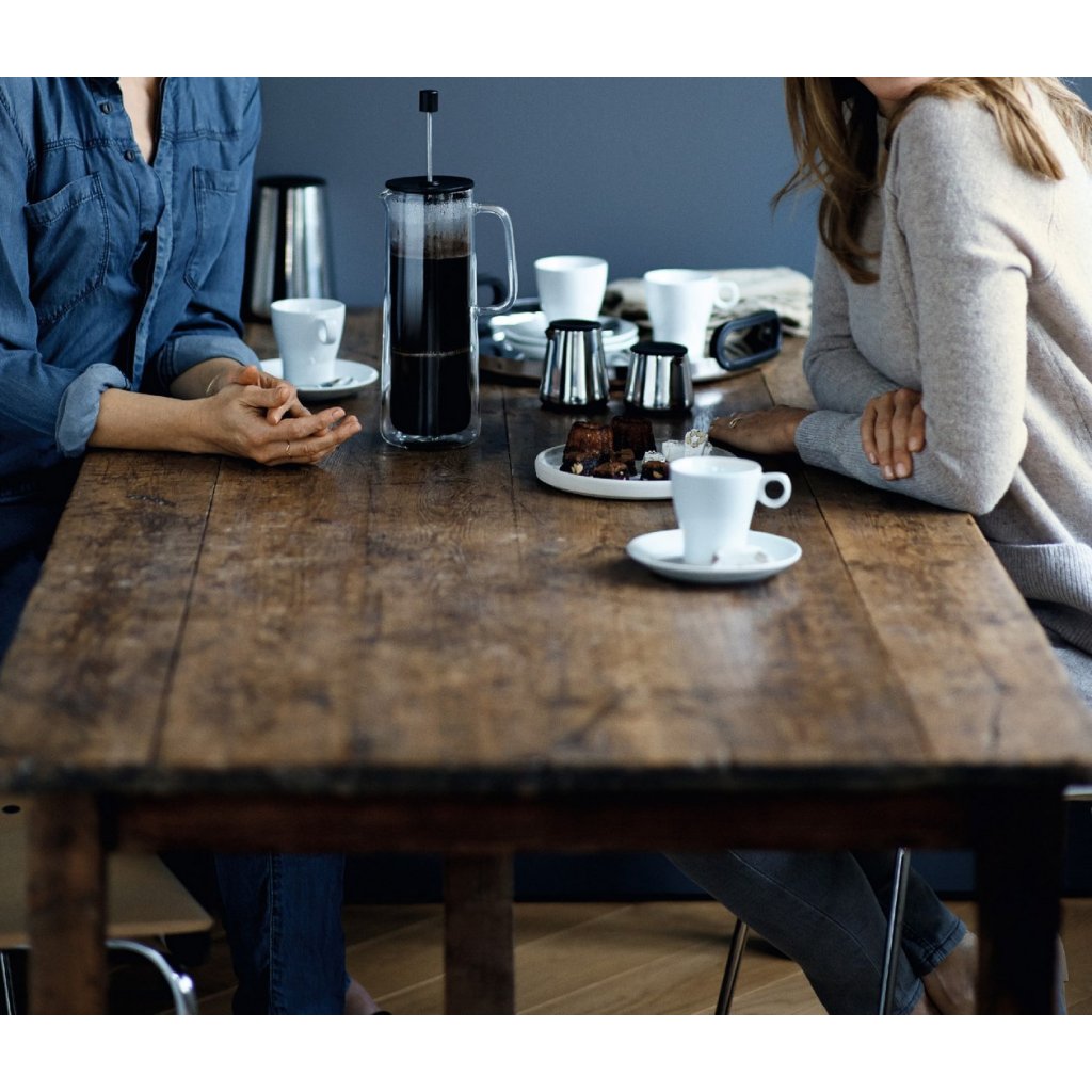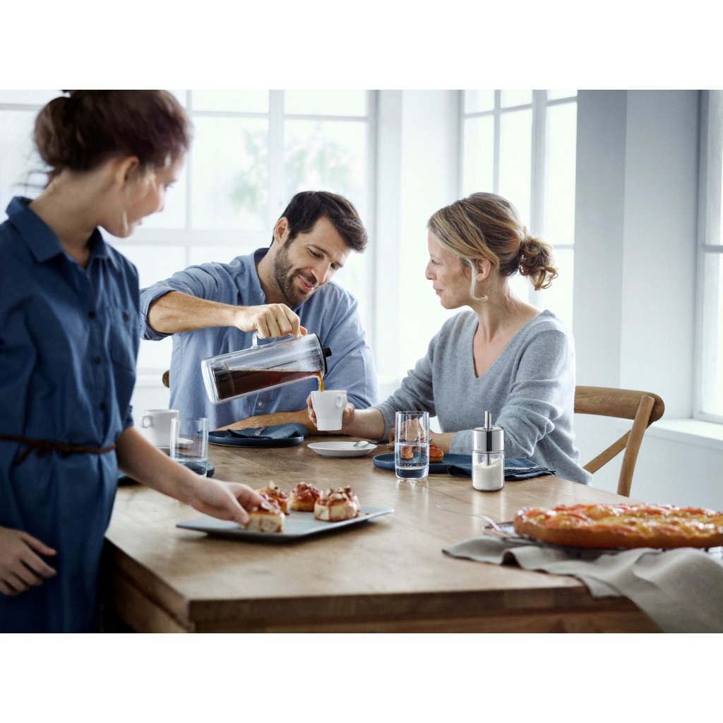 Ez az üvegből gyártott, duplafalú french press kávéfőző a finom kávé és a stílusos dizájn kedvelőinek van szánva. A Coffee Time sorozat modern, kézenfekvő formavilágát a német Jan Christian Delfs dizájner tervezte. A Coffee Time sorozat termékei közt mindent megtalál, amire a kávé főzése és felszolgálása alatt szüksége lehet.