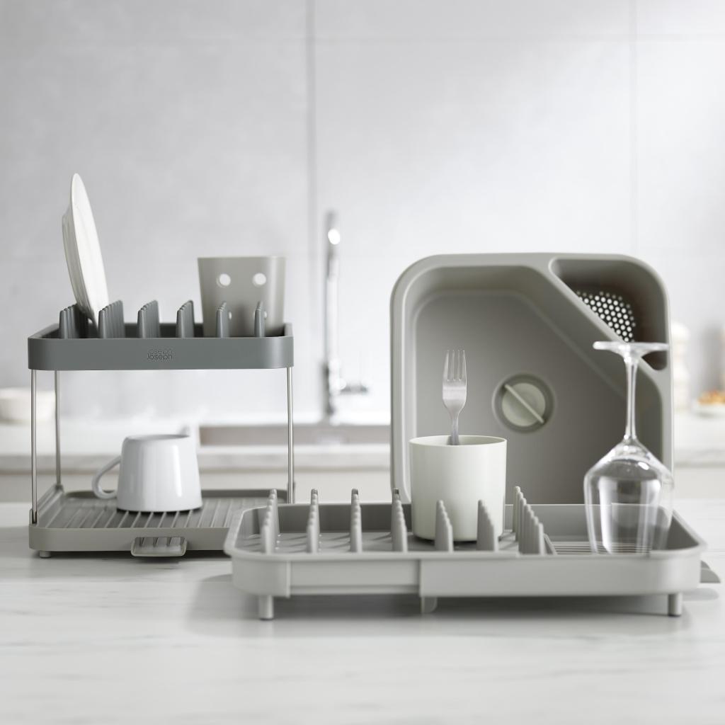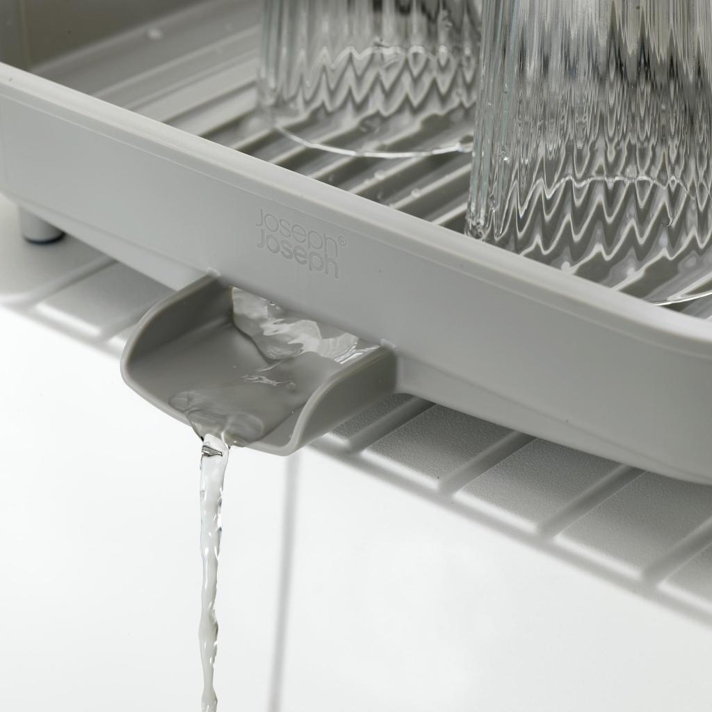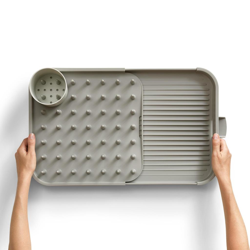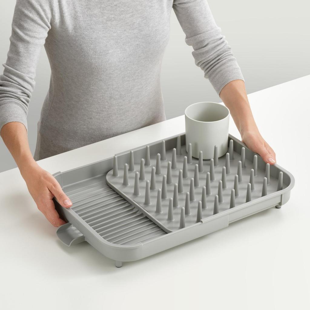 - A Joseph Joseph DUO bővíthető csepegtetőtálca rugalmas megoldást kínál az edények szárításához, és lehetővé teszi a csepegtető felület egyszerű hozzáigazítását konyhája aktuális igényeihez.