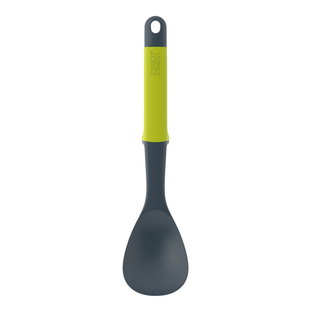 Hová és hogyan tegyük le a merőkanalat, fakanalat és más, használatban lévő konyhai eszközt, hogy ne csöpögtessünk össze vele mindent? Ez örök probléma. A gyorskezű háziasszony legjobb, legideálisabb partnere a főzésben a rendezett munkapult. A Joseph Joseph dizájnerjei ezúttal csak egy apróságot újítottak, ami mégis mérföldkő a konyhaművészet történetében. Az ügyes kis talpat képző görbület az eszközök nyelének alsó felén biztosítja, hogy azok mártásos, zsíros feje sosem ér le a konyhapultra.