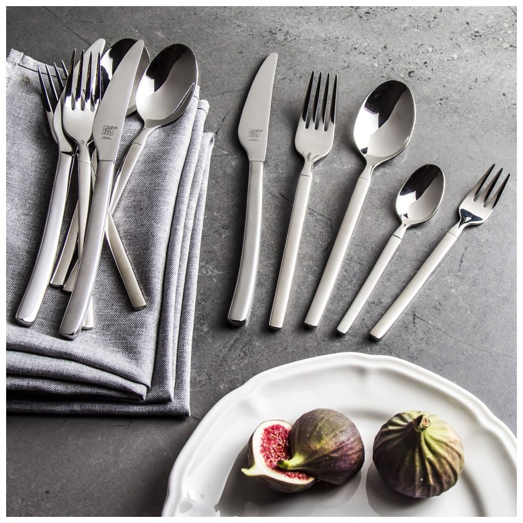 Ne elégedjen meg a standarddal, válassza a legmagasabb minőségű Zwilling dizájner evőeszközöket. Kiváló minőségű 18/10 rozsdamentes acélból készült 18% króm és 10% nikkel optimális kombinációja a legjobb korrózióállóság érdekében Hosszú ideig tartó ezüstös csillogást biztosít. Az étkezőkés kialakítás az ideális súly és egyensúly érdekében. Kovácsolt étkezőkés pengék a vágási pontosság érdekében. Mosogatógépben mosható.