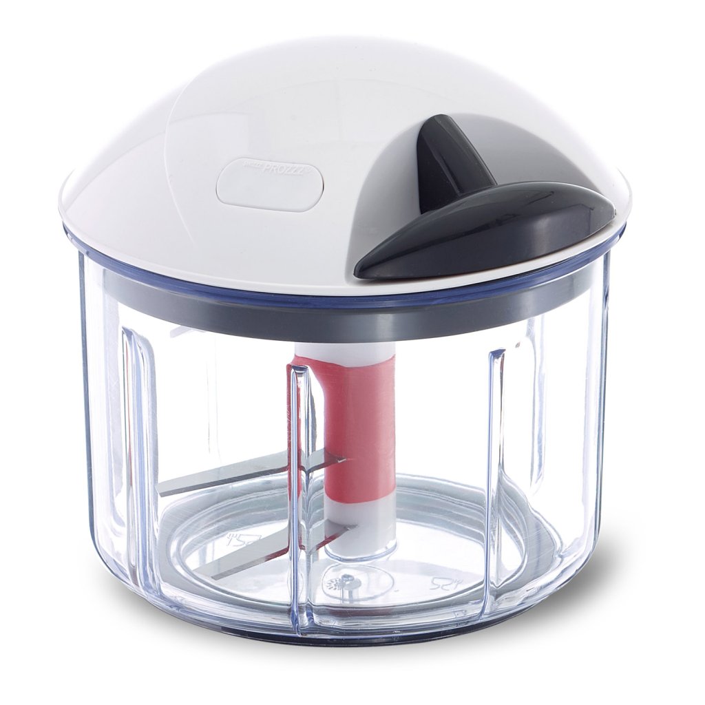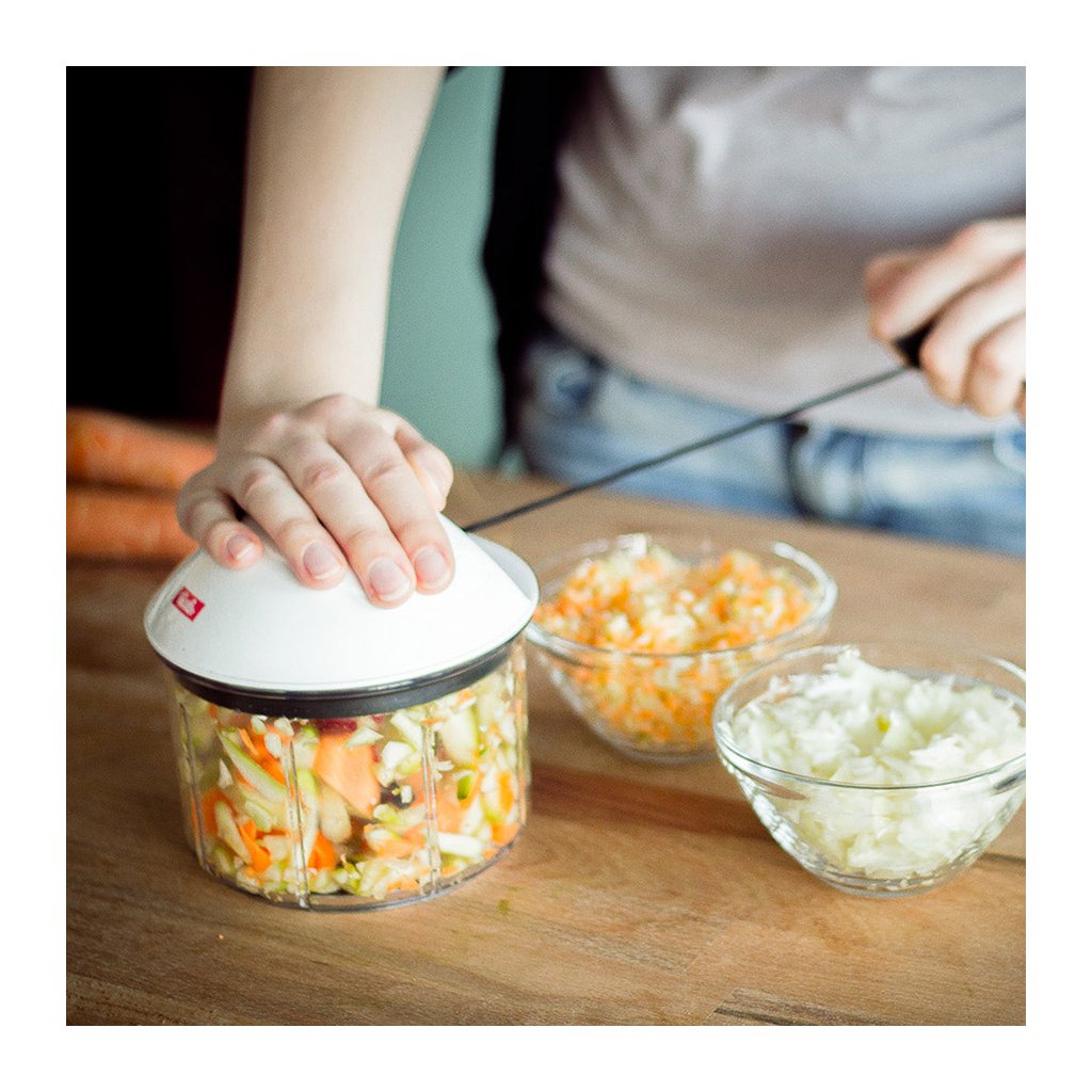 Szeletel, aprít, kever, pürésít – és mindezt elektromos áram és fizikai megerőltetés nélkül. A Finecut olyan univerzális konyhai segéderő, amely egy háztartásból sem hiányozhat. Elég csak elővenni, és kezdődhet a munka. Piknikezés, grillezés vagy sátrazás közben, vagy a villany nélküli bungalóban is nagy hasznát veszi az ember. Aki azt gondolná, hogy egy újabb, felesleges konyhagépet kívánunk rásózni, nagyon téved: a Finecut ténylegesen megkönnyíti a nyersanyagokkal való munkát. Néhány másodperc alatt felszeleteli a gyümölcsöt, zöldséget vagy összedarabolja a fűszernövényeket, finomra vagy durvára, ahogy éppen kívánjuk. A fedéllel indítható be a rotáció, amely a késeket mozgatja, gyorsabb pörgetésnél kisebb, lassabb pörgetésnél nagyobb darabokra aprítva a kívánt nyersanyagot. Az átlátszó edényfalnak köszönhetően figyelemmel kísérhetjük az aprítási folyamatot. Ez a sokoldalú Finecut játszva elbánik a hagymával, pürésíti a levest, elkészíti a gyerekpapit, mártásokat, pesto-t, salátaönteteket készíthet vele, de akár a salátalevelek közül is kicentrifugázhatja vele a vizet. A tartozékok között ugyanis nemcsak késeket talál majd, de mixer-fejet, és centrifugázáshoz való kosarat is. Az edény könnyedén lezárható a praktikus fedéllel, így étel tárolására is alkalmas.