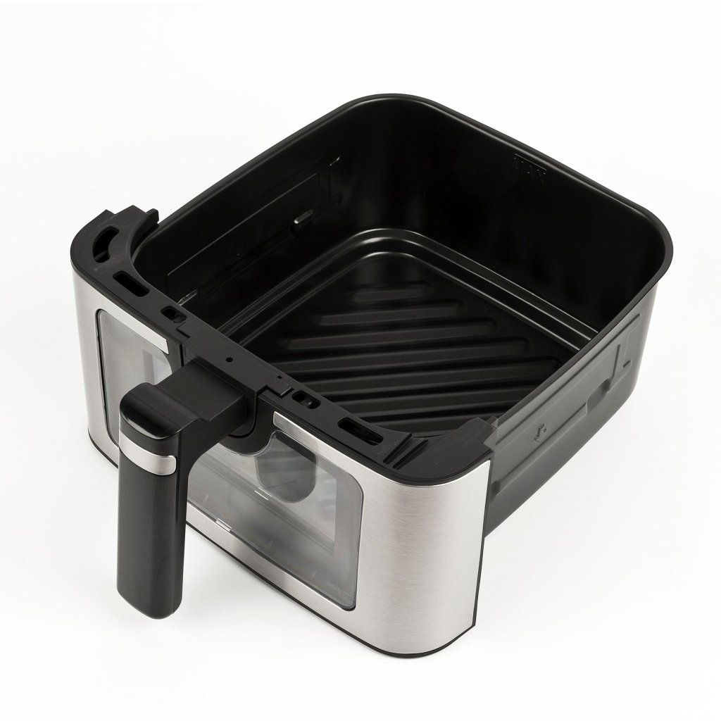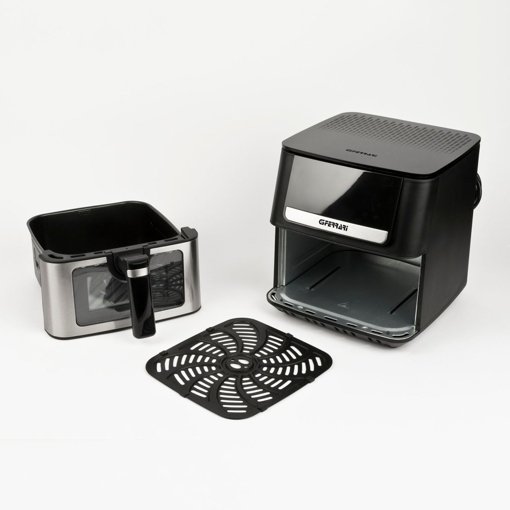 - a kialakítás a fekete matt testet rozsdamentes acél részletekkel és a sütés ellenőrzésére szolgáló átlátszó ablakkal kombinálja