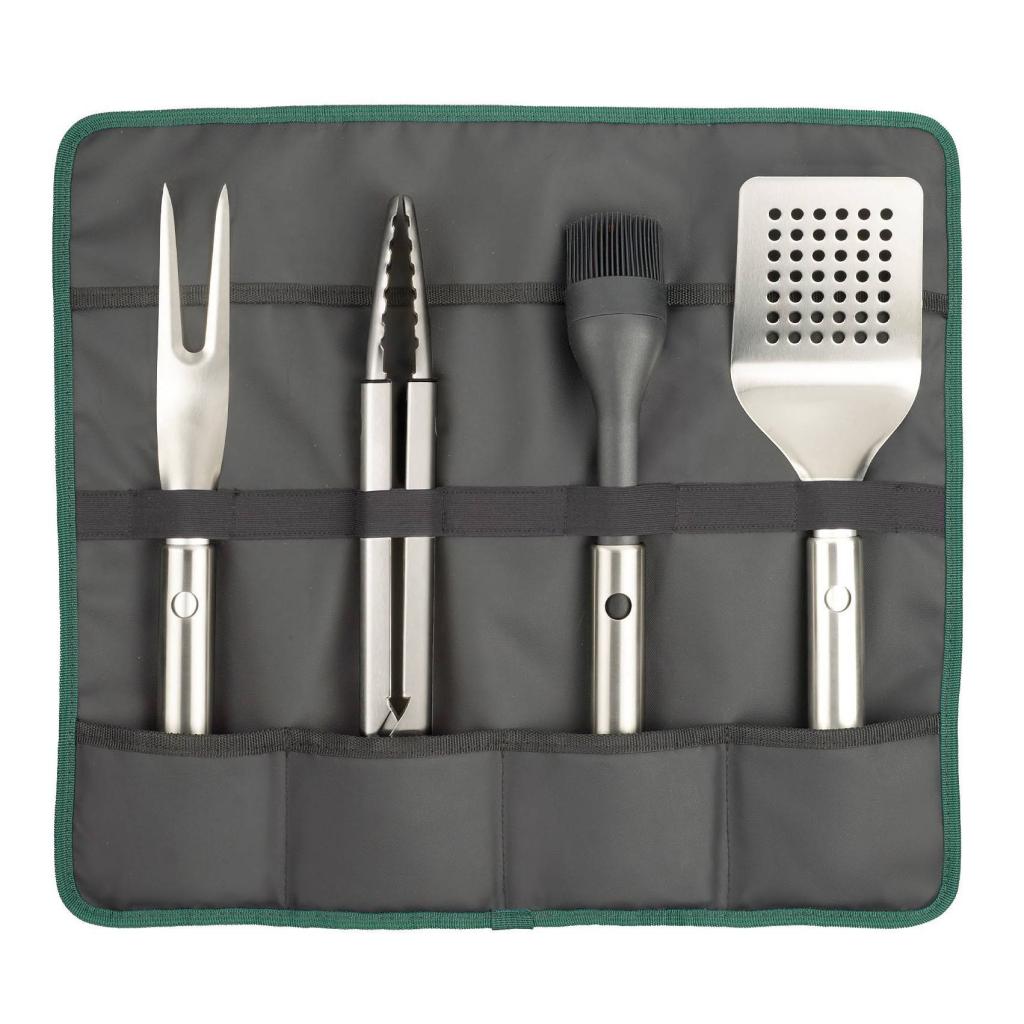- A Joseph Joseph GRILLOUT grillsütő készlet négy rozsdamentes acél szerszámot és egy praktikus tokot tartalmaz a kültéri grillezés során a teljes és kényelmes ételkészítéshez.