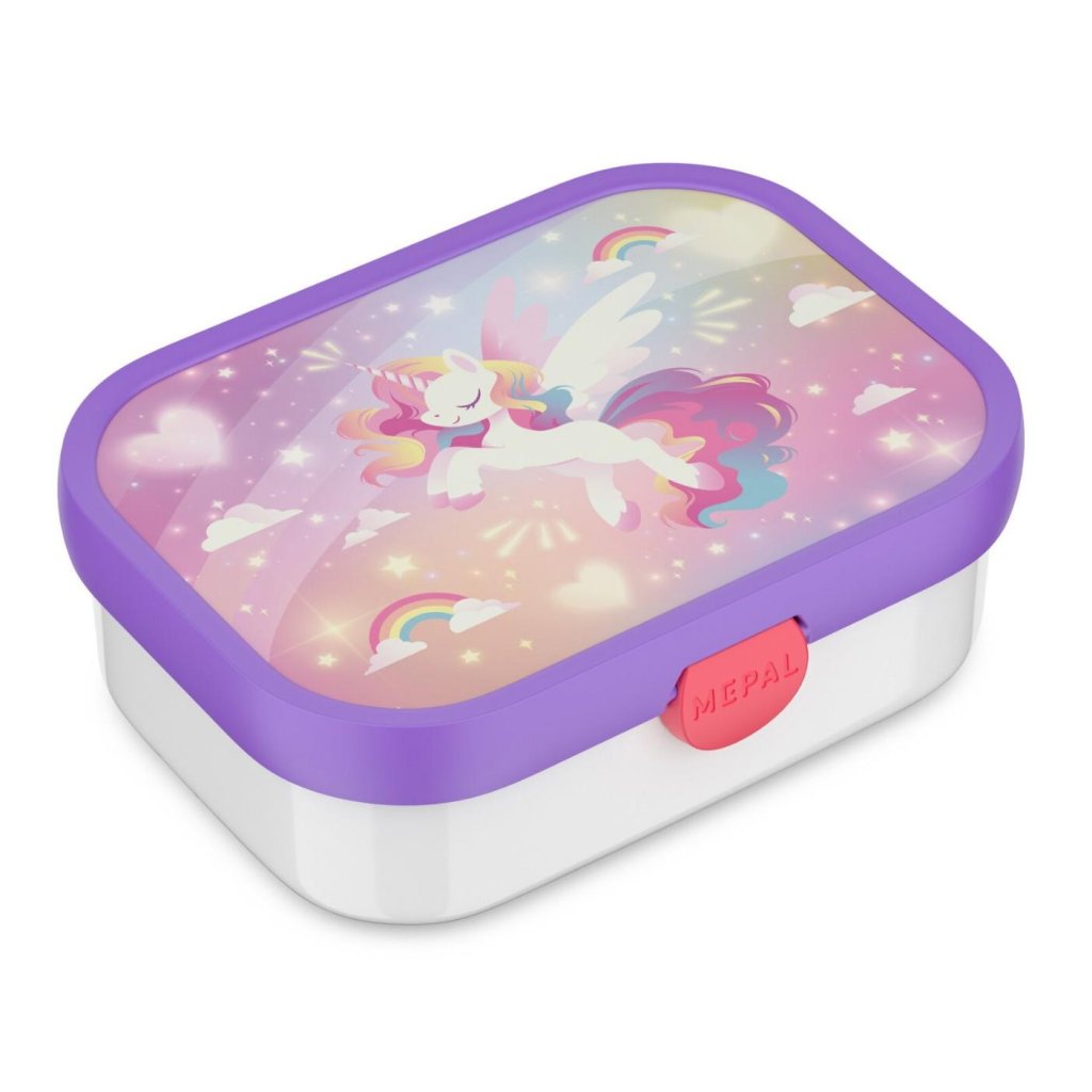 - gyerek uzsonnás doboz CAMPUS unikornis motívummal, ideális társ iskolai ebédekhez és kirándulásokhoz