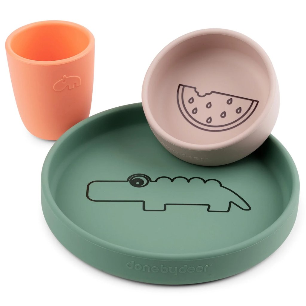 Gyerek étkészlet CROCO, 3 db, többszínű, szilikon, Done by Deer