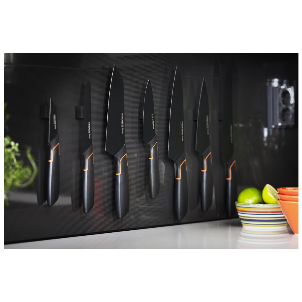 Az Fiskars Edge késcsalád elegáns, modern megjelenést és innovatív funkciókatkínál, amelyek több mint megkönnyítik a konyhai munkát. A pengék kiváló minőségű rozsdamentes acélból készültek, kúpos éllel a hosszan tartó élesség érdekében. A világ minden tájáról származó késminták egyedülálló kombinációját képviselik.