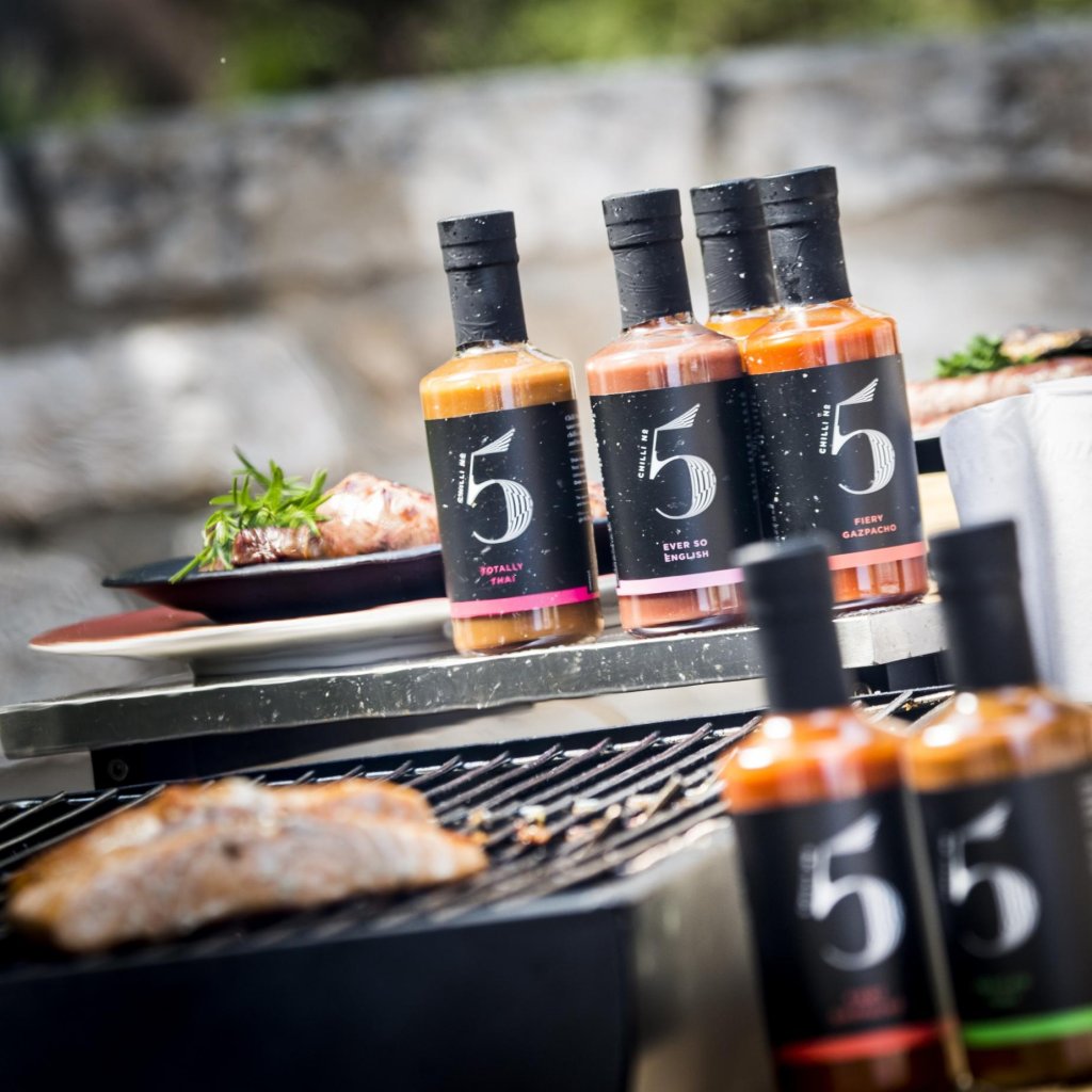 - A szósz ötféle chili paprika keverékét tartalmazza Chilli No5, amely összetett, rétegzett csípősséget biztosít anélkül, hogy megzavarná a fő ízeket.