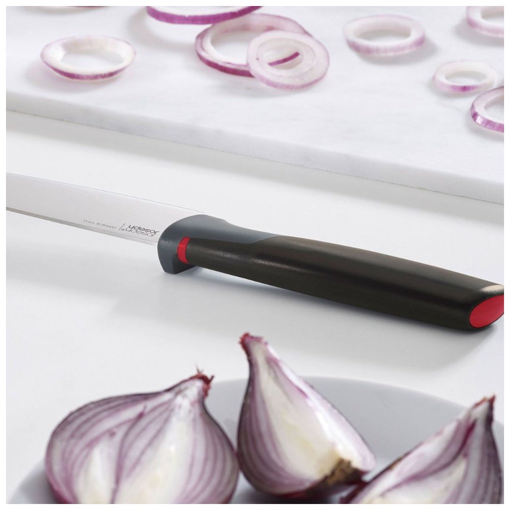 - a kés pengéje kiváló minőségű japán rozsdamentes acélból és ergonomikus műanyag markolatból készült