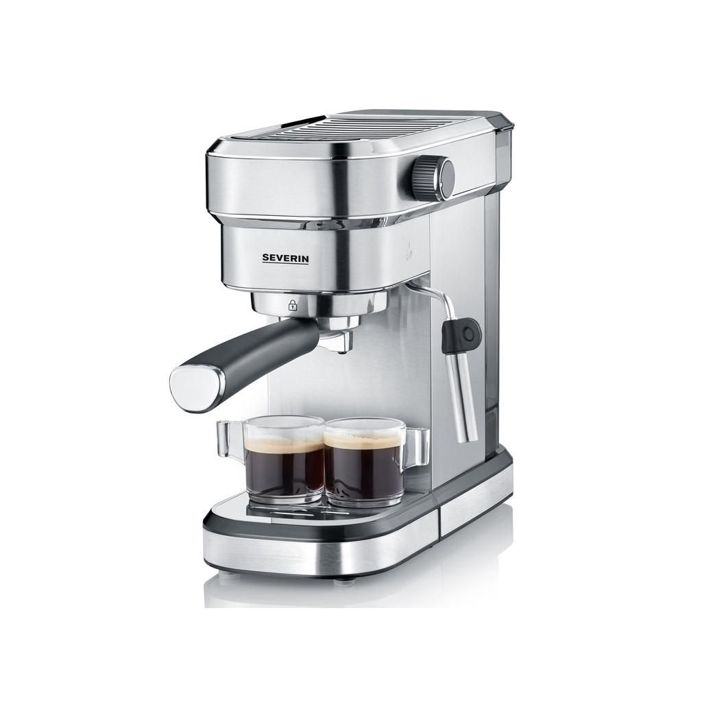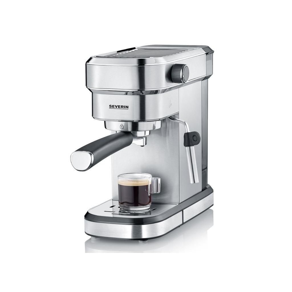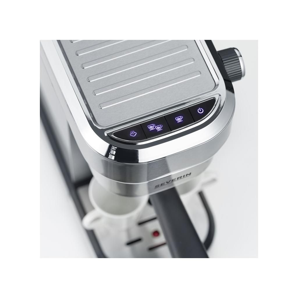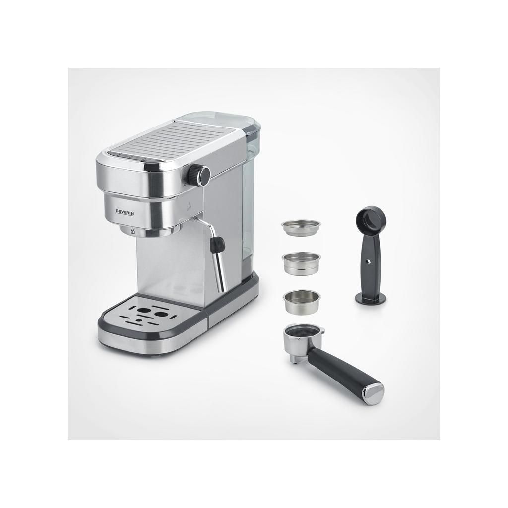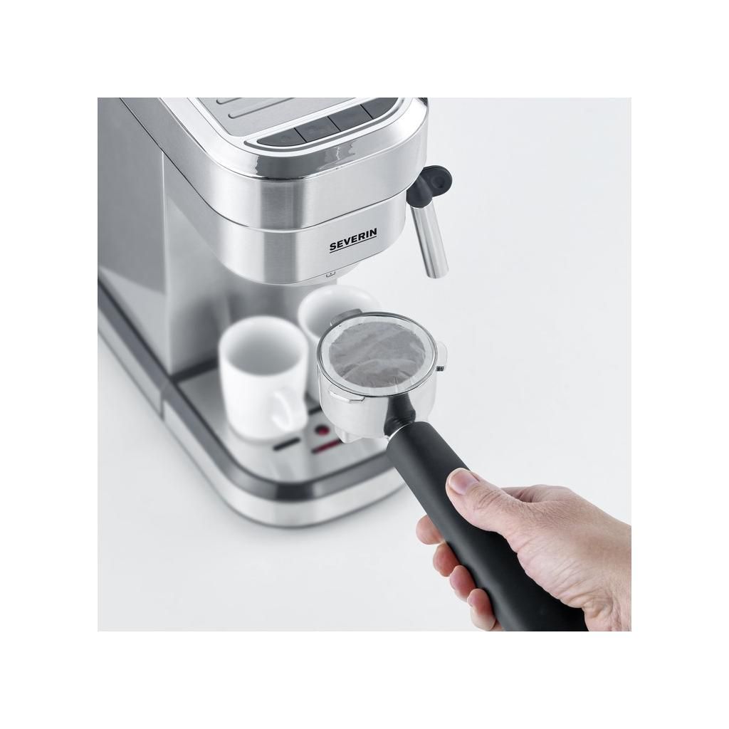 Profi karos kávéfőző KA 5994 Severin 3 szitával: 1 adag őrölt kávéhoz, 2 adag őrölt kávéhoz és ESE podokhoz. A beépített tejhabfúvóka sokoldalú elkészítési lehetőségeket biztosít mindenféle kávé- és tejkülönlegességhez. A kávéfőző gyorsan, mindössze 40 másodperc alatt felmelegszik. A tál és a levehető rozsdamentes acéllemez könnyen tisztítható.
