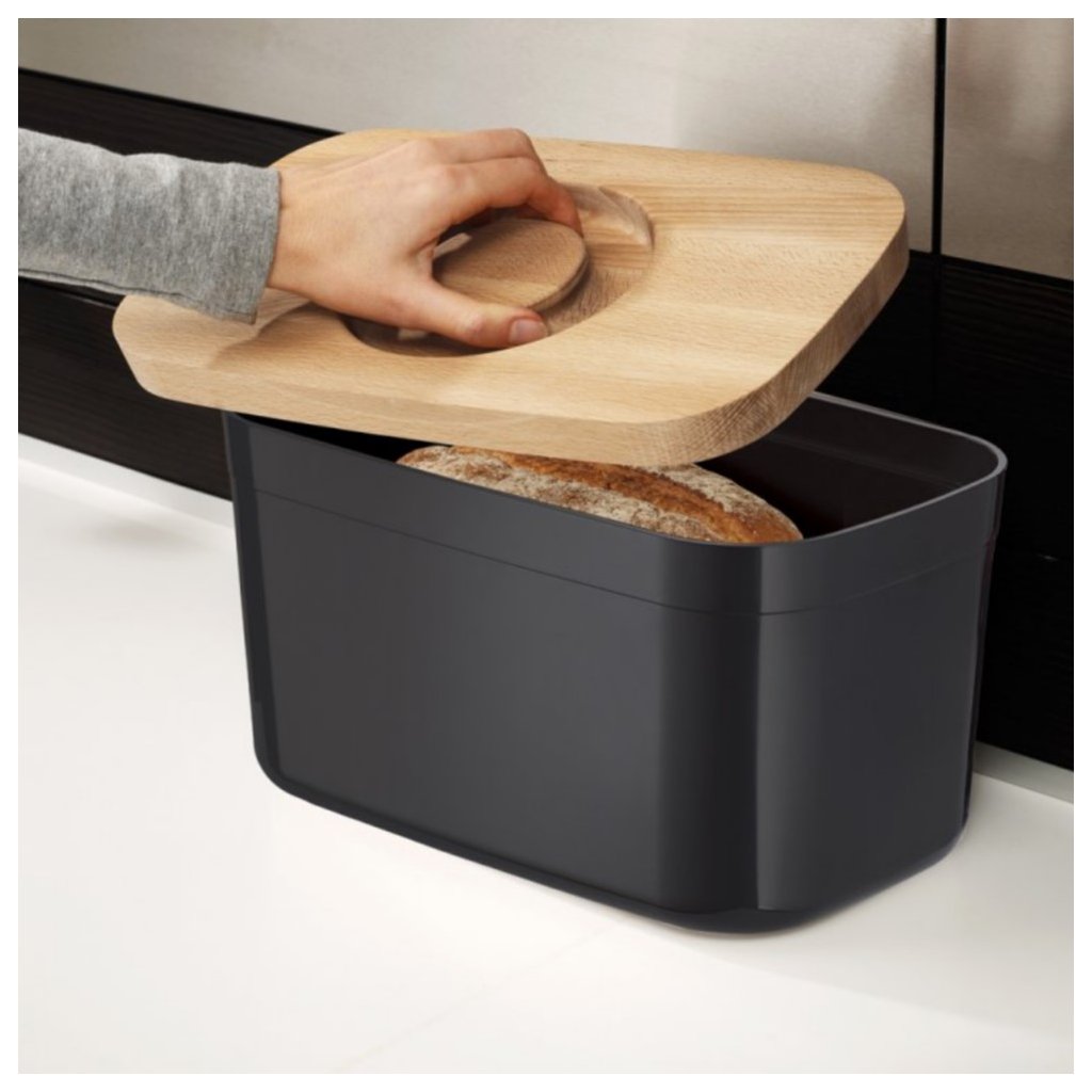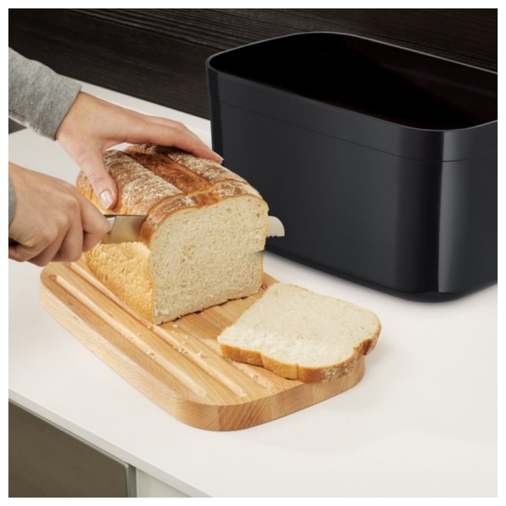 Kenyértároló vágódeszkával BAMBOO 81103 35 x 22 cm, fekete, műanyag, Joseph Joseph