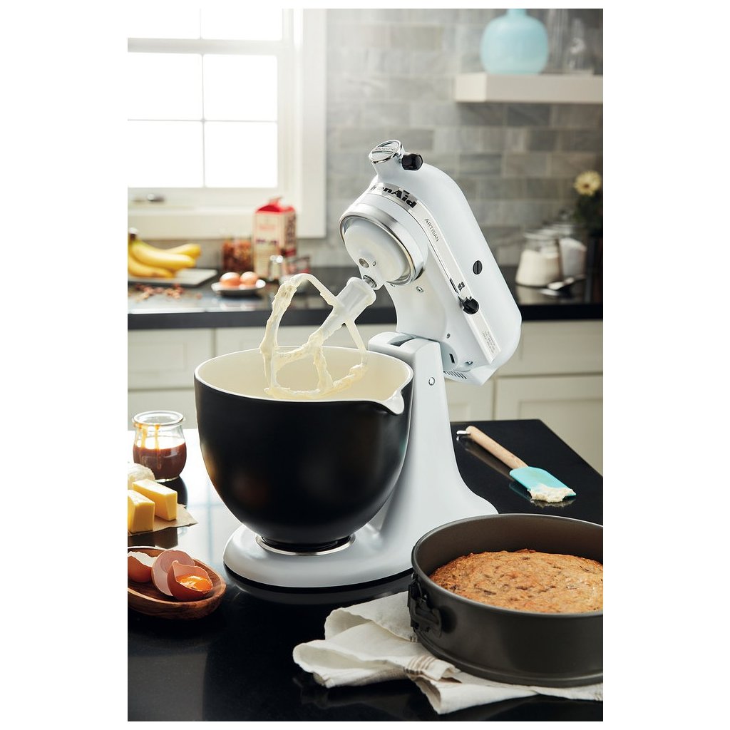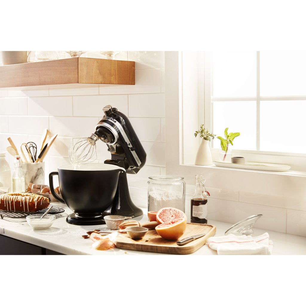 Ha Ön boldog tulajdonosa egy KitchenAid Artisan konyhai robotgépnek, akkor érdemes megvásárolnia ezt a matt fekete kerámia tálat is, amely még magasabb szintre emeli a robotgép kivételes funkcióit. Ez a gyönyörű kerámia tál bírja a magas és az alacsony hőmérsékletet is. Mikrohullámú sütőben, fagyasztóban és sütőben is használható, valamint mosogatógépben mosható. Könnyen használható, mivel kiöntővel és kényelmes fogantyúval rendelkezik. Exkluzív megjelenése bármilyen konyhában szépen mutat. A többfunkciós kerámia tál kizárólag ezekkel a robotgépekkel kompatibilis: Artisan (5KSM45, 5KSM90, 5KSM125, 5KSM150, 5KSM156, 5KSM175, 5KSM180, 5KSM185)
