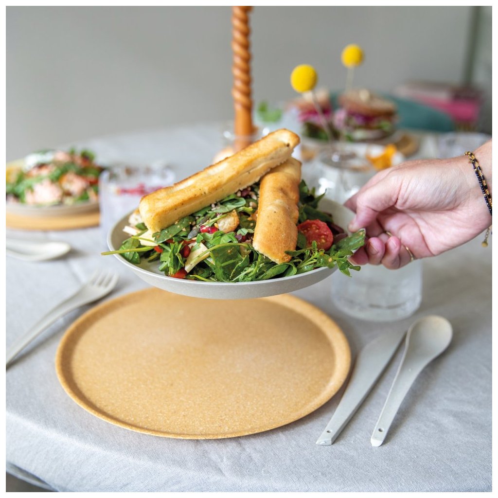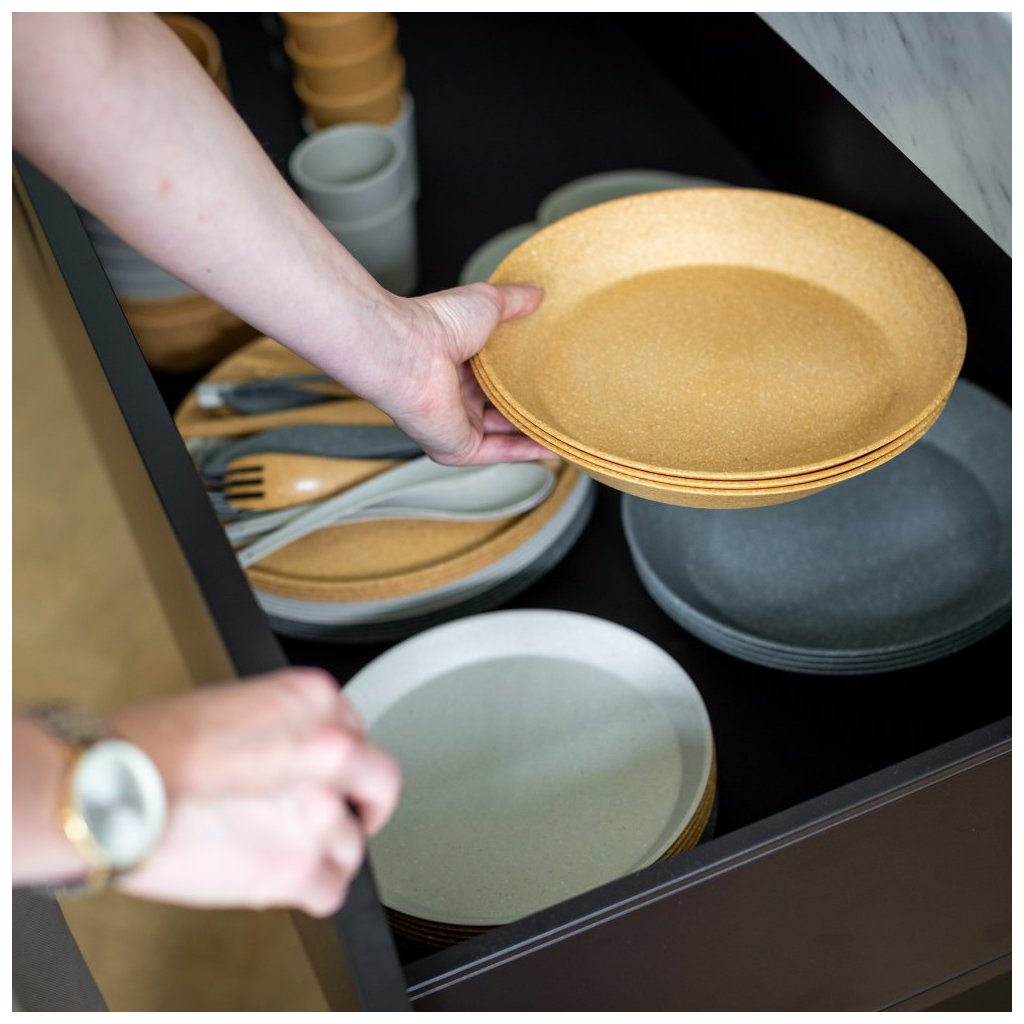 Műanyag tányér CONNECT, 4 db szett, 25,5 cm, természetes fa színű, Koziol