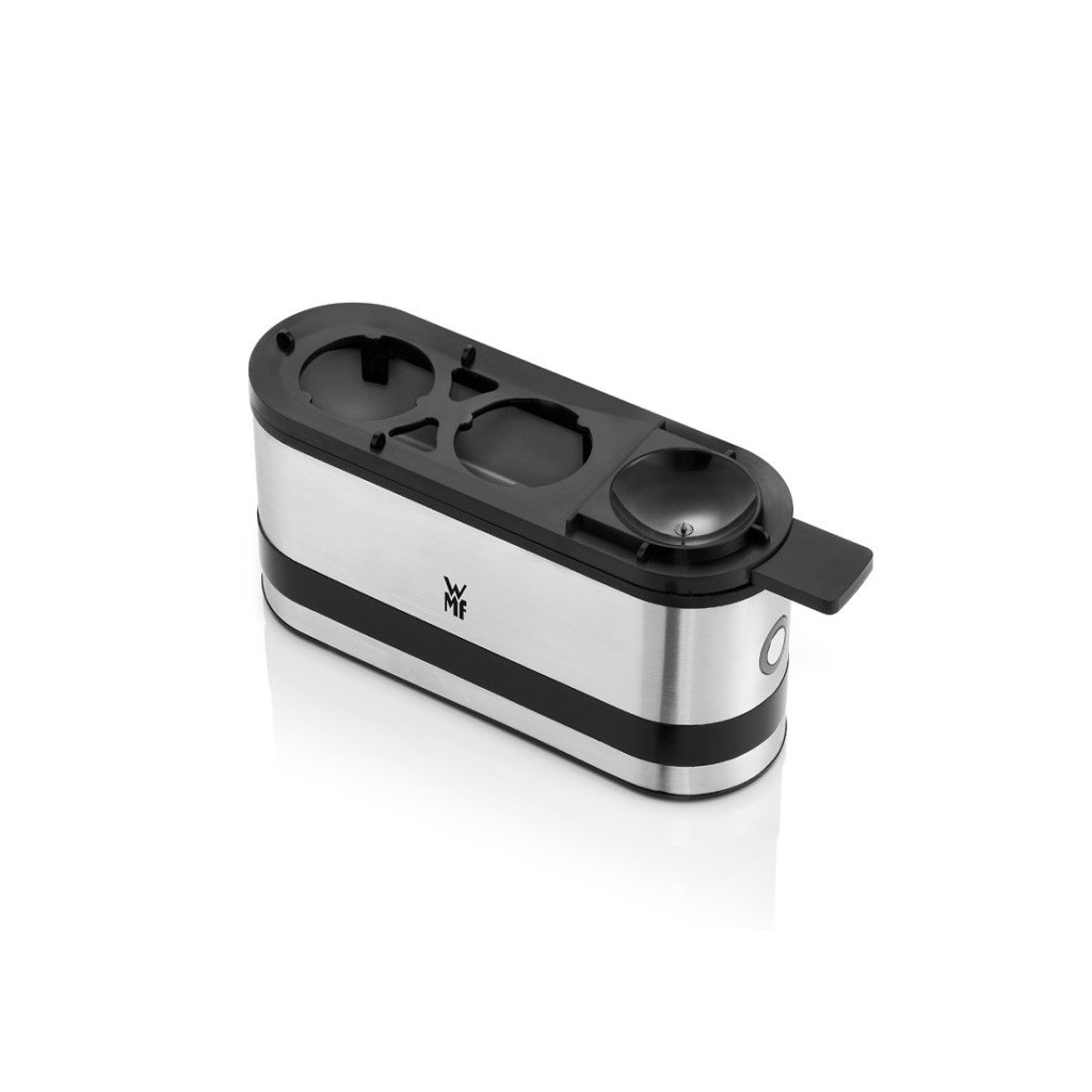 A KITCHENminis® tojásfőző helytakarékos, és egy vagy két, S-XXL méretű tojást tud készíteni reggelire. Az áttetsző test kiváló minőségű tritánból készült, biszfenol A mentes, a fedél vízmérő pohárként is szolgál. A test Cromargan® rozsdamentes acélból kialakított, elegáns kivitelezésű, fekete kiegészítőkkel, tökéletesen illik minden konyhába.