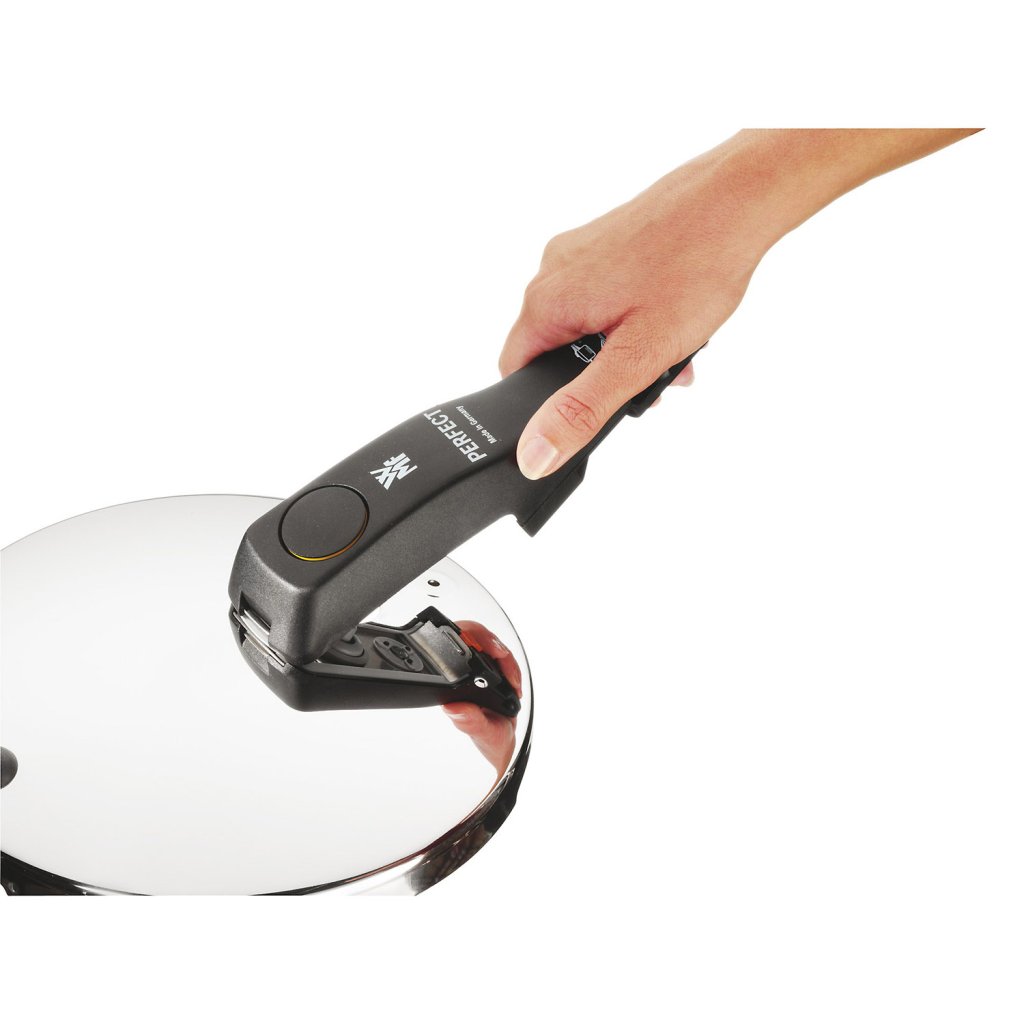 Levehető kuktanyél, melyet a pontos főzési eredmények érdekében beépített nyomásjelzővel, míg a fedő zárásához és nyitásához csúszkás vezérlővelláttak le. Segítségével könnyen szabályozható a fazékban lévő gőz mennyisége – a vezérlő csúszka előre tolásával egyszerűen és biztonságosan, a testtől távolodó irányban, kiengedhető a pára a fazékból. A nyél használat után leöblíthető, a fazék és a fedő mosogatógépben mosható.