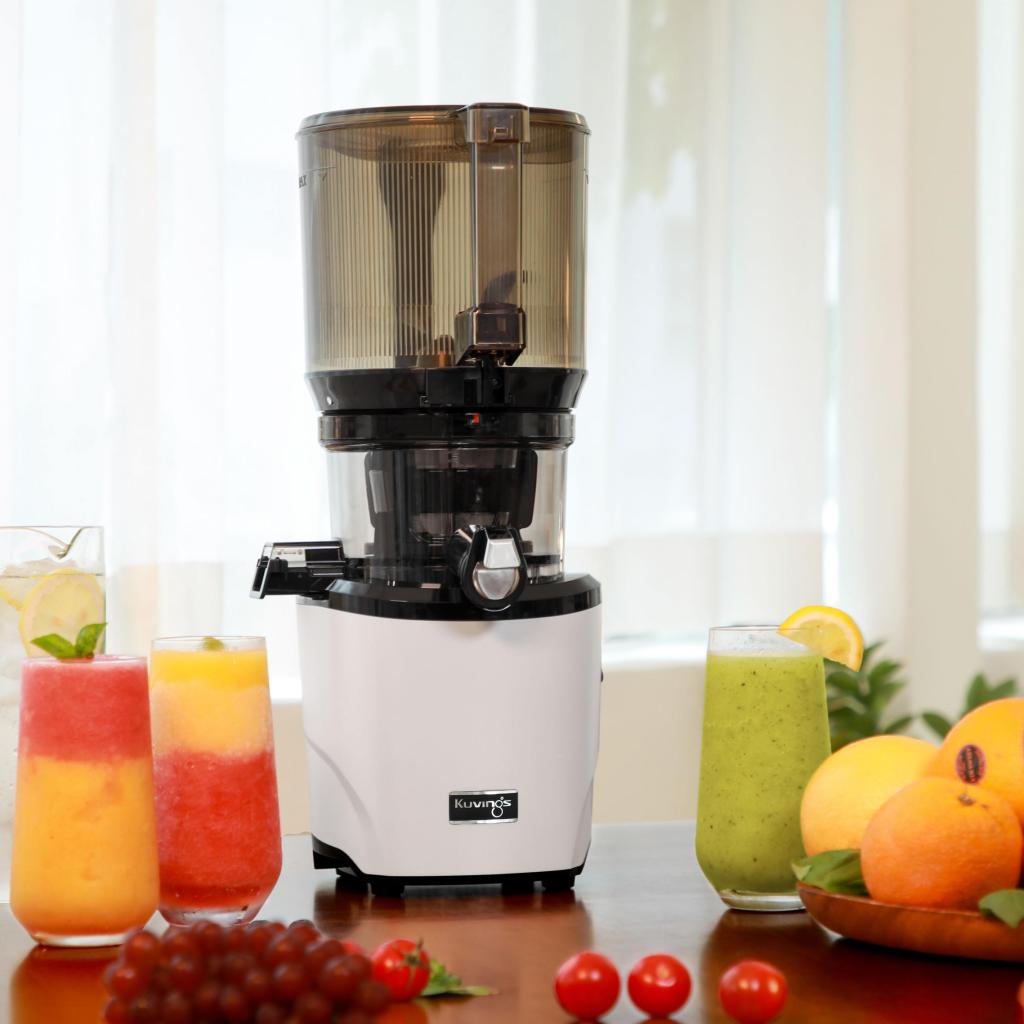 - A Kuvings gyümölcscentrifuga AUTO10S egy modern eszköz, amelyet arra terveztek, hogy a belehelyezett gyümölcsökből és zöldségekből könnyedén préseljen levet anélkül, hogy az összetevőket előzetesen fel kellene aprítani.