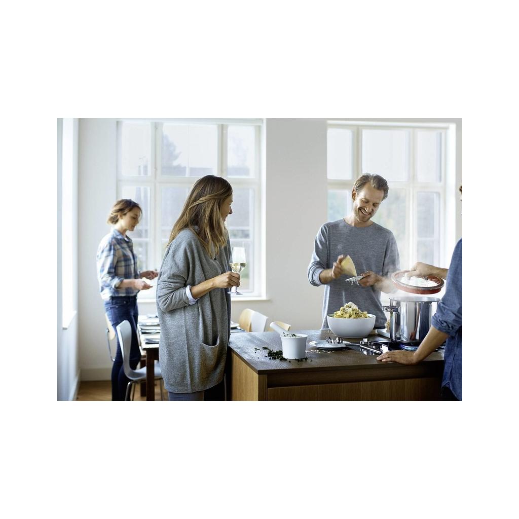 A Function 4 edények pereme hajlított, ezért a kiöntés során a folyadék nem csurog végig az edények falán. A belső mérőskála megkönnyíti az optimális mennyiségű víz megmérését. Az edények karbantartása könnyű, mosogatógépben tisztíthatók.