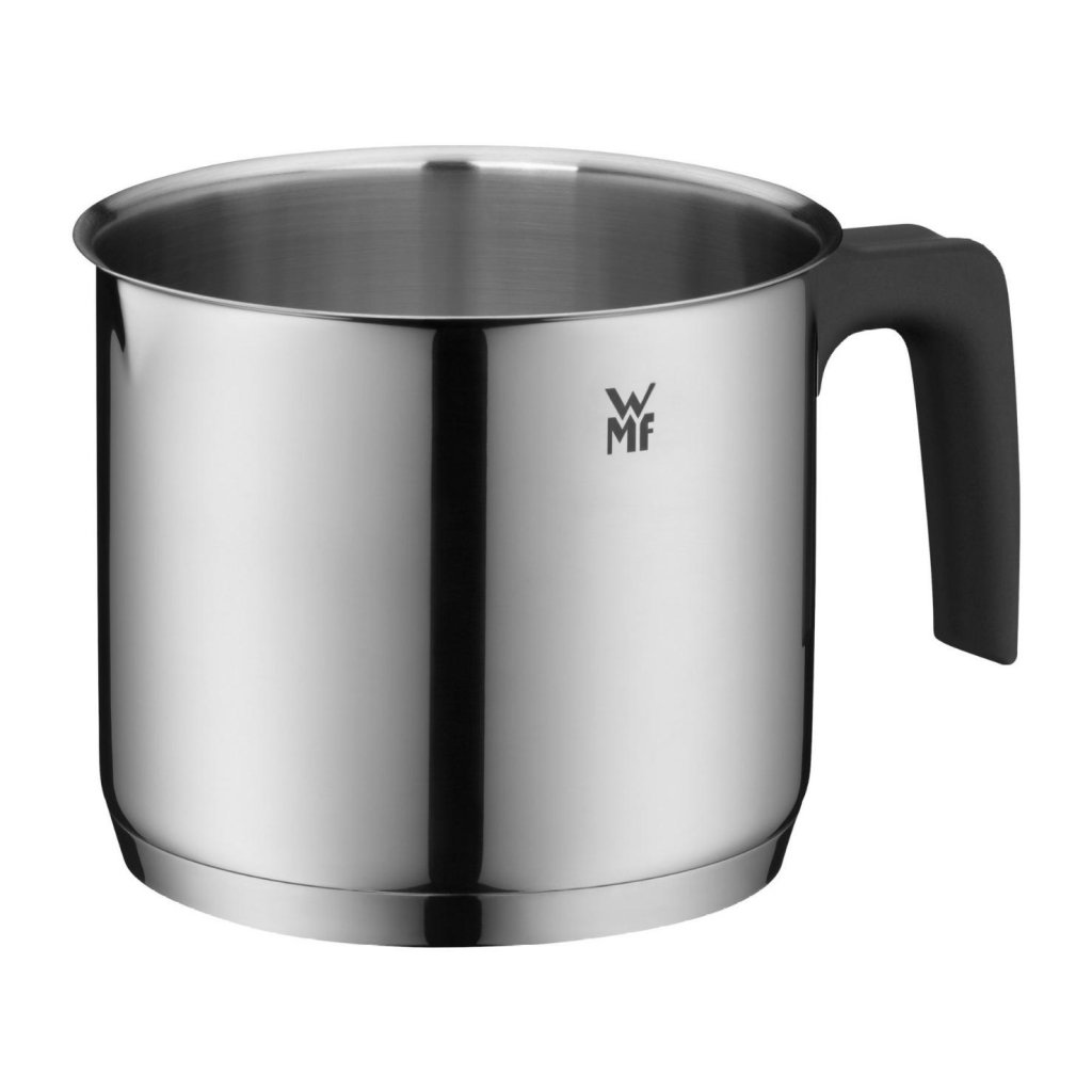 ANyeles lábas értékű tejeskanna WMF 14 cm átmérőjű, polírozott Cromargan® rozsdamentes acélból készült, műanyag fogantyúval. Alkalmas finom ételek, például tej vagy tejszínes szószok melegítésére és főzésére. Az univerzális TransTherm® alap gyorsan eloszlatja a hőt, és minden típusú főzőlaphoz, beleértve az indukciósat is, alkalmas. A Nyeles lábas könnyen tisztítható, mosogatógépben is mosható.