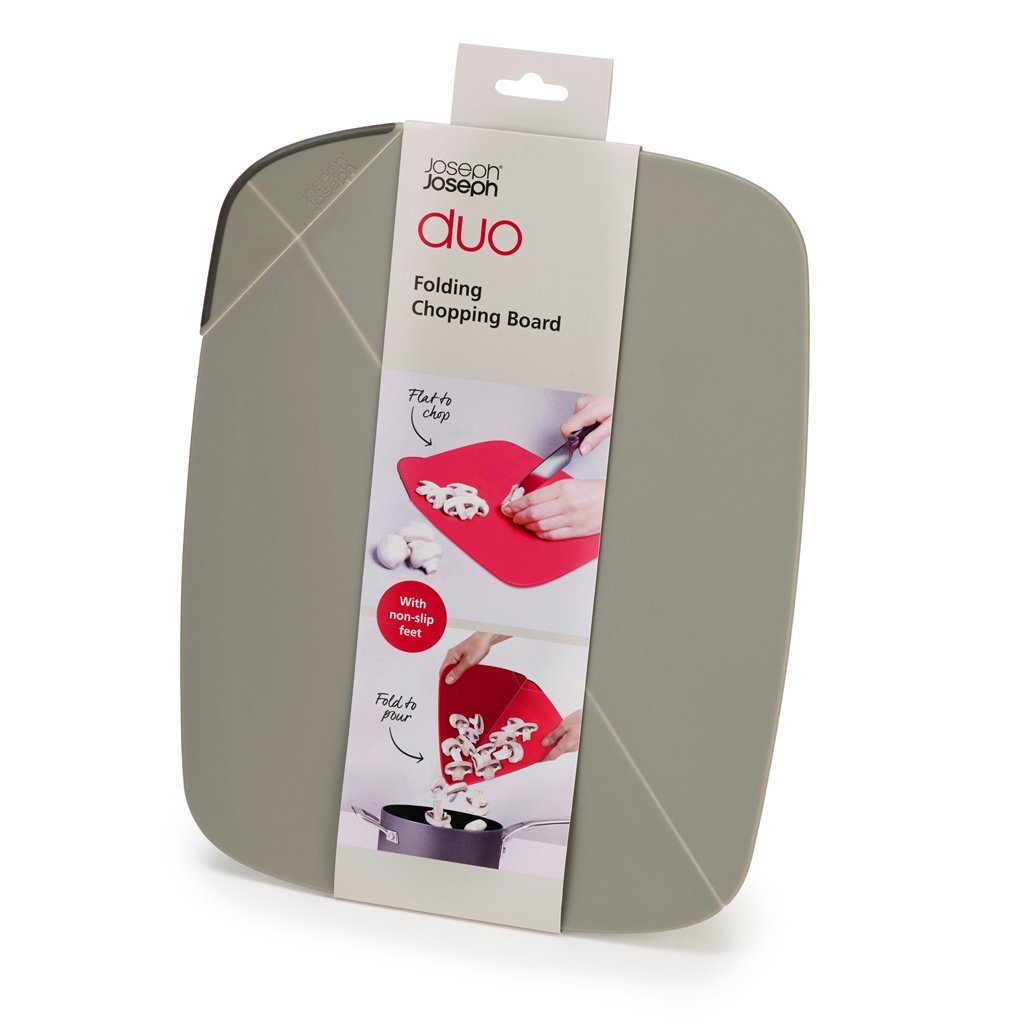 JOSEPH JOSEPH Duo összecsukható vágódeszka - összecsukható, a vágódeszka alakja lehetővé teszi az ételek könnyű kiöntését az edénybe, csúszásmentes szilikon kiemelkedések az alsó felületen, hogy megakadályozza a munkafelületen való csúszást, a vágódeszka formája lehetővé teszi az ételek könnyű beöntését az edénybe. Az alsó felületen lévő csúszásmentes szilikon kiemelkedések megakadályozzák a munkafelületen való csúszást. Anyag: polipropilén, hőre lágyuló gumi. Mosogatógépben mosható.