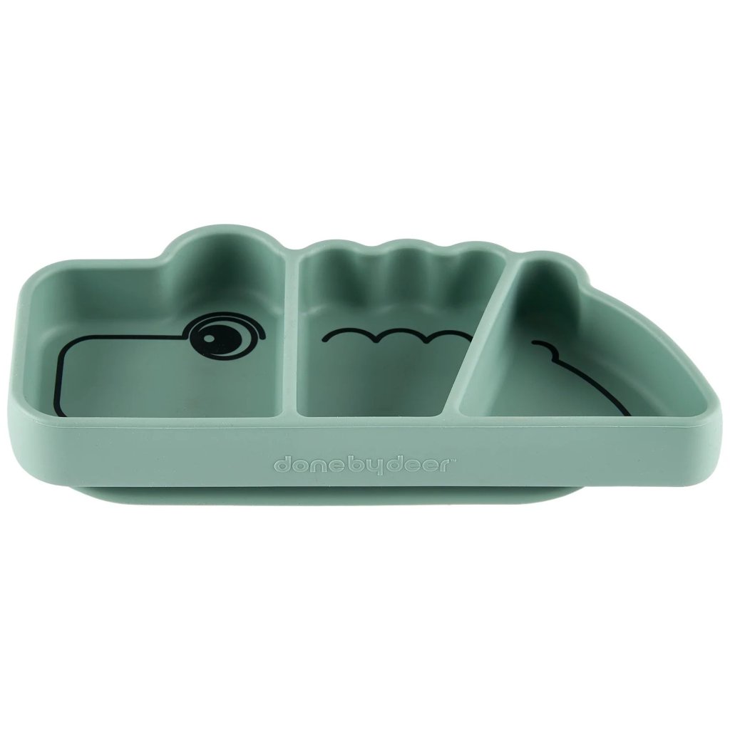 Gyerekek tányér rekeszekkel és tapadókoronggal CROCO, zöld, Done by Deer
