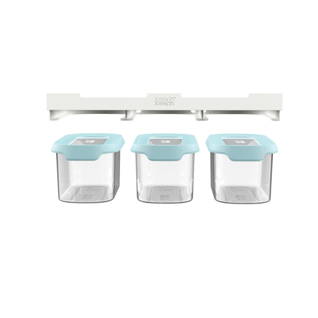 Az innovatív JOSEPH JOSEPH CupboardStore ételtároló üvegekkel kihasználhatja az utolsó szabad helyet is a konyhaszekrény polcai alatt. A CupboardStore termékcsalád 3 darab 900 ml-es és 1,3 literes befőttesüveg-készletet (a polc aljáról szerelt tartókba csúsztathatóak - erős 3M ragasztószalaggal stabilizálva), valamint egy 5 darab egyedi befőttesüveg-készletet (2 x 900 ml, 2 x 1,3 liter, 1 x 2,2 liter + a legnagyobb befőttesüveg fedele alatt egy kanál található). Az üvegek légmentesen zárnak, száraz élelmiszerek tárolására alkalmasak. Csak kézzel mosható.