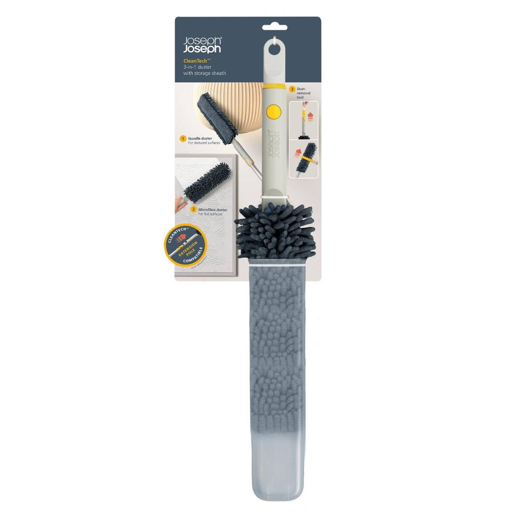 - A Joseph Joseph CLEANTECH teleszkópos hosszabbító rúddal való kompatibilitás megkönnyíti a magasabb helyek, például a felső szekrények és a mennyezet sarkainak elérését.