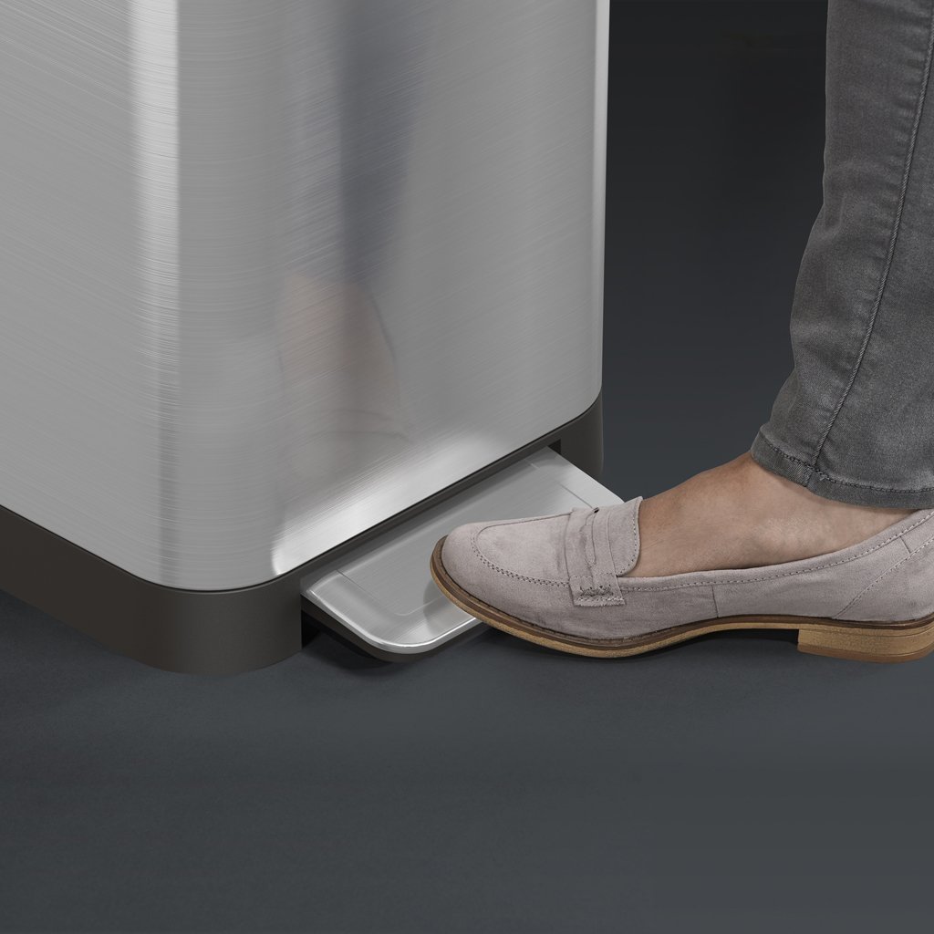 Nagy előnye a lassan csukódó, szivárgásmentes fedél. A kosár szilárd pedállal nyílik. Elegáns, karcsú kialakításának köszönhetően könnyen illeszkedik a szoba elrendezéséhez.