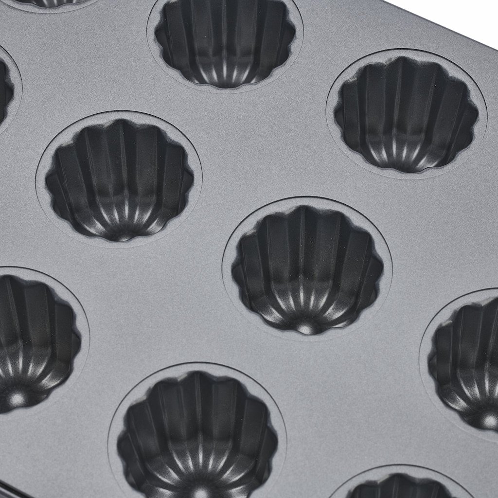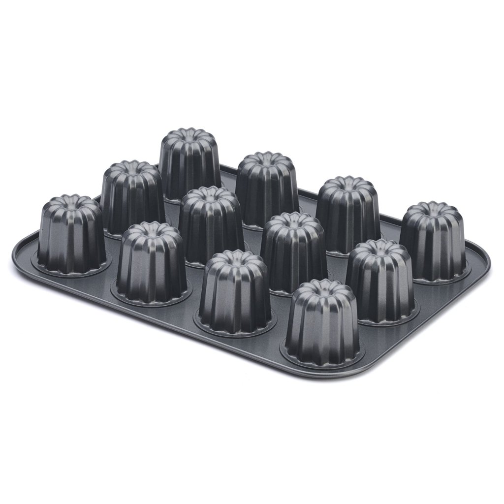 - a tapadásmentes acélból készült 12 cannelés formát hagyományos francia desszertek sütésére tervezték, amelyeknek jellegzetes karamellizált héja és lágy közepe van