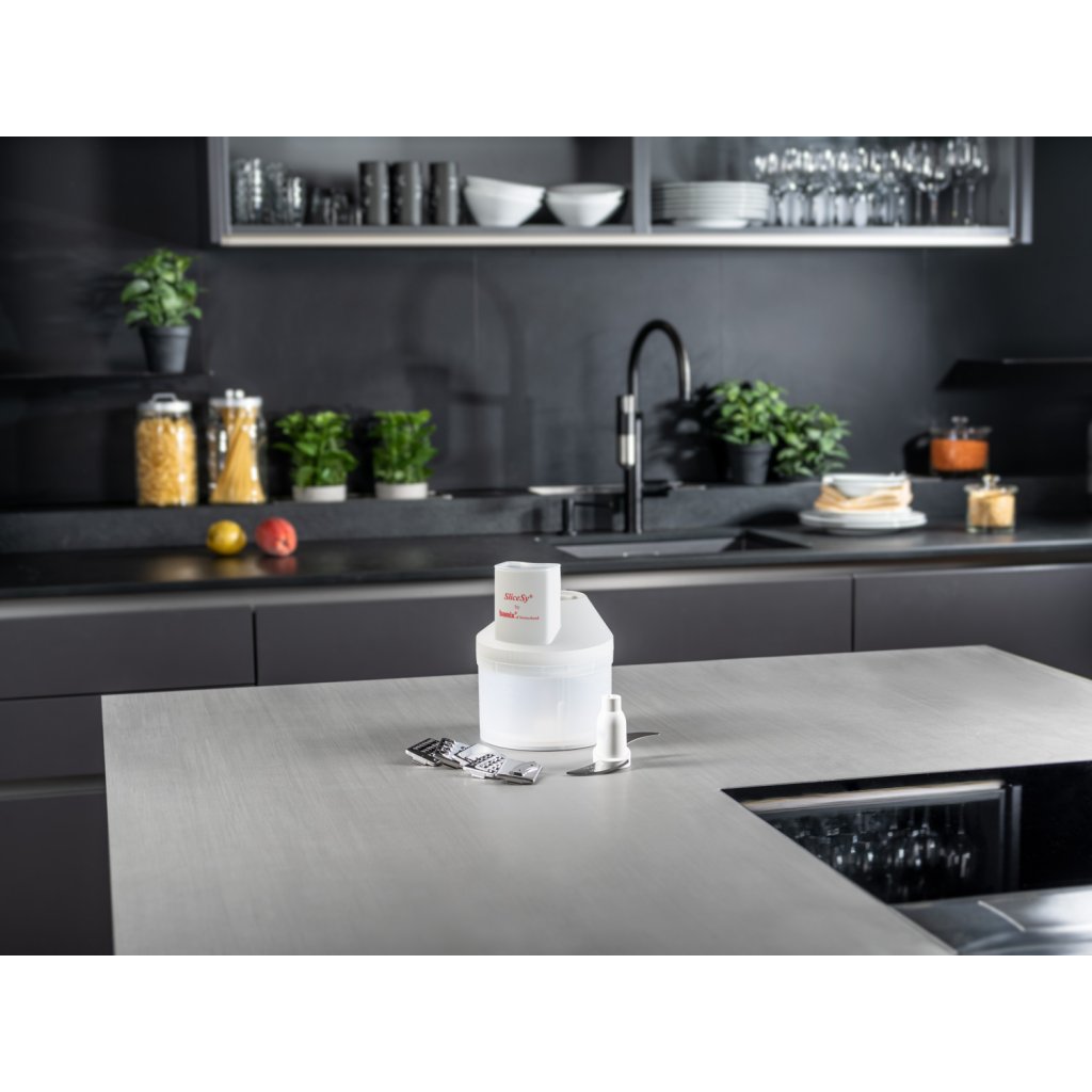 Az bamix ® botmixerrel együtt a SLICESY a tökéletes all-in-one konyhai robotgép. Nélkülözhetetlen kiegészítő azok számára, akik értékelik a gyors és egyszerű kezelhetőséget.