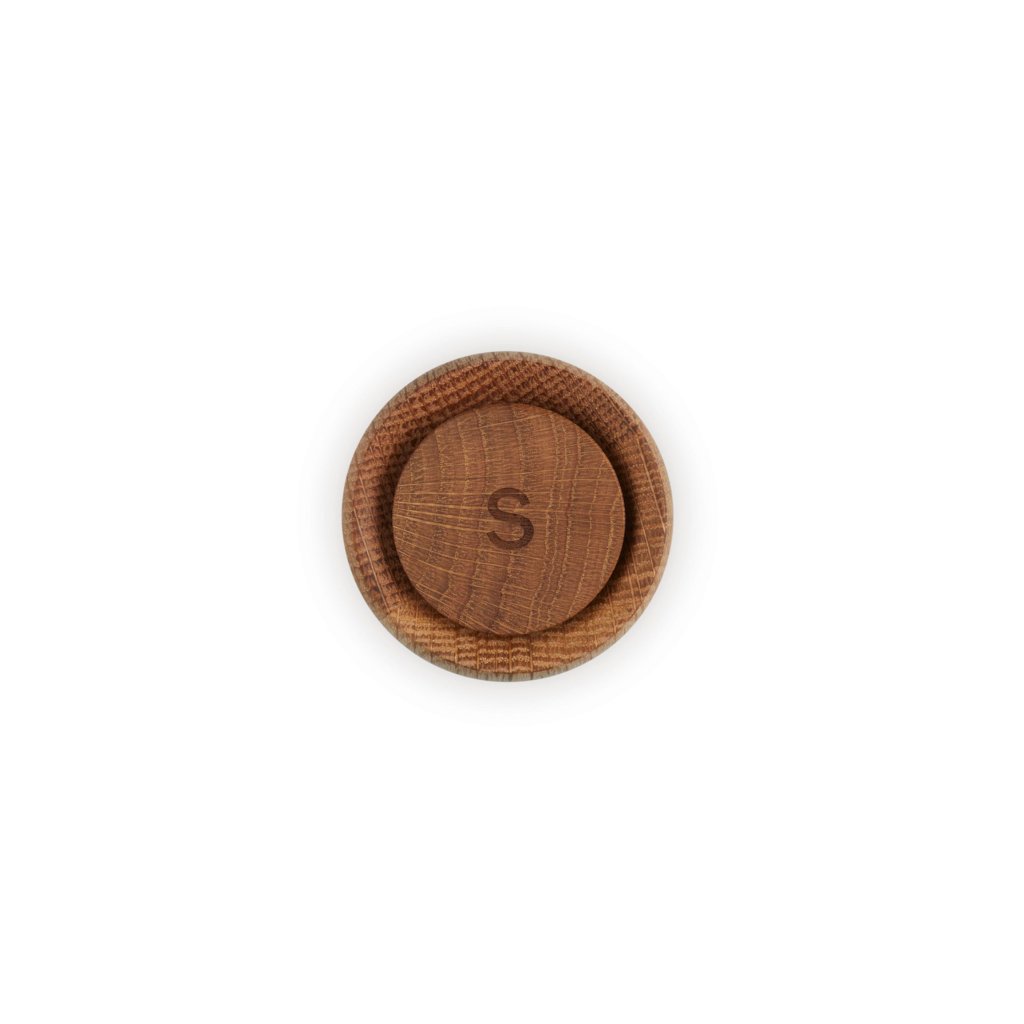 - A tölgyfából készült, finoman "S" betűvel ellátott sapka könnyen megkülönböztethető a borsmalomtól, miközben egy kellemes részletet ad hozzá, amely minden dizájnrajongó szemének tetszeni fog.