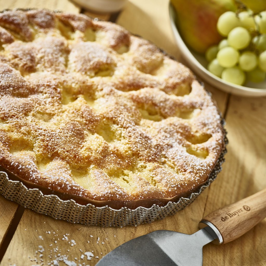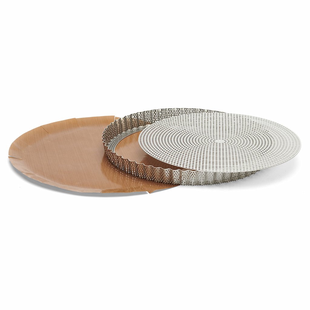 - a perforált rozsdamentes acélból készült kerek tortaforma ideális édes és sós torták készítéséhez otthoni és professzionális környezetben egyaránt