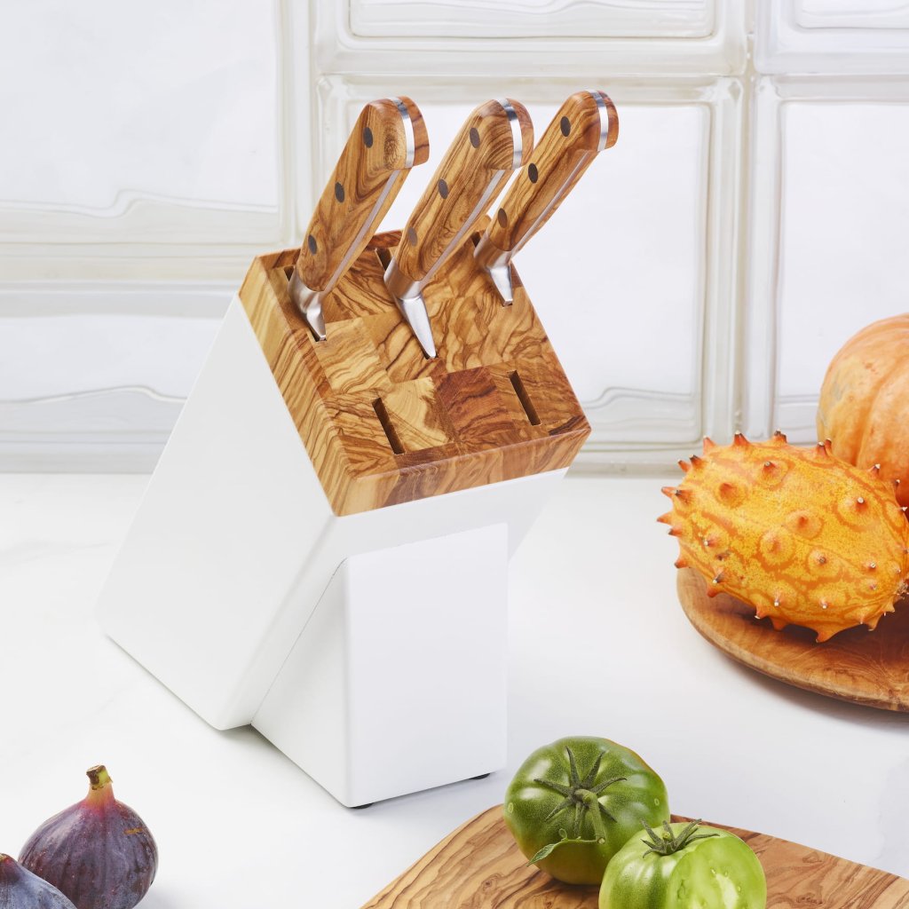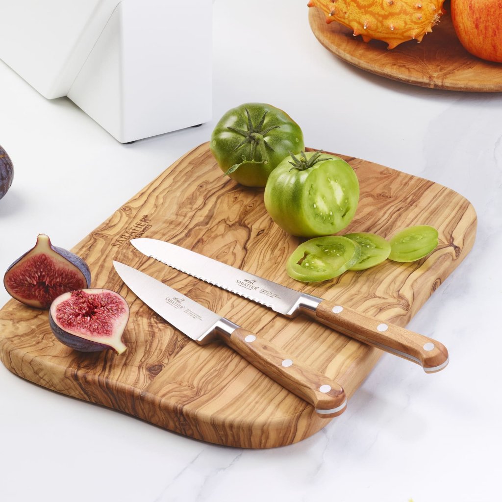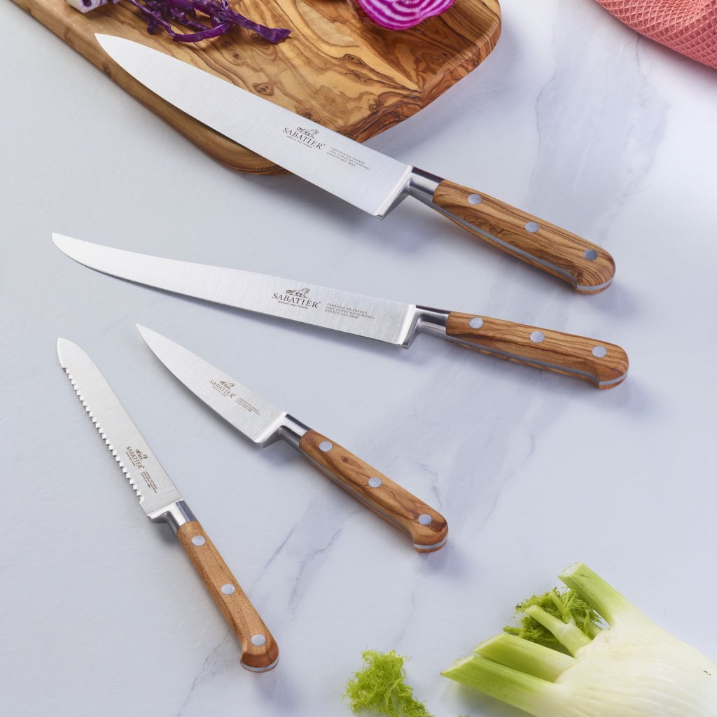 - az olajfából készült ergonomikusan formázott markolat kényelmes fogást és vonzó természetes megjelenést biztosít a késnek