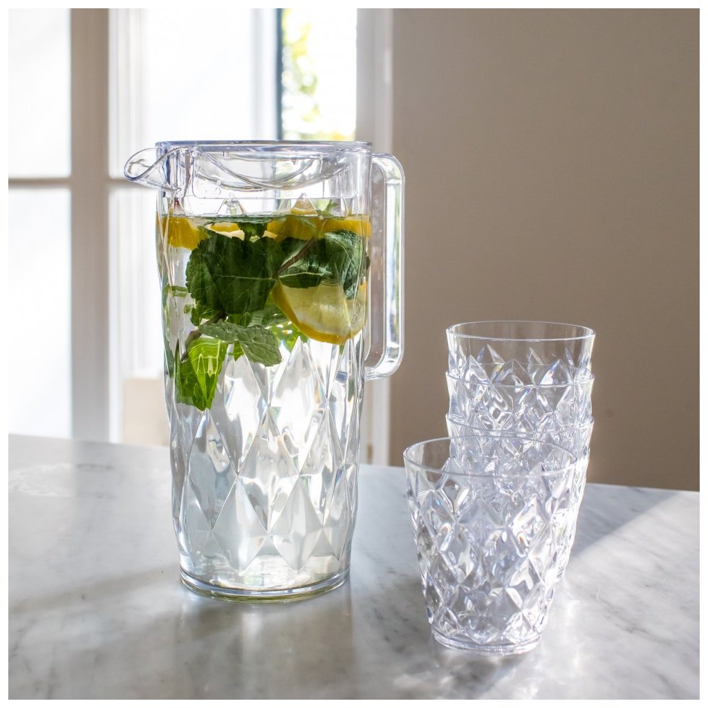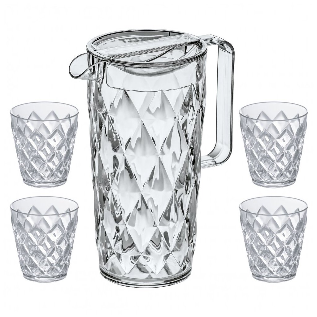 Vizes kancsó és vízpoharak CRYSTAL szettben, 4 db, 250 ml/1,6 l, Koziol