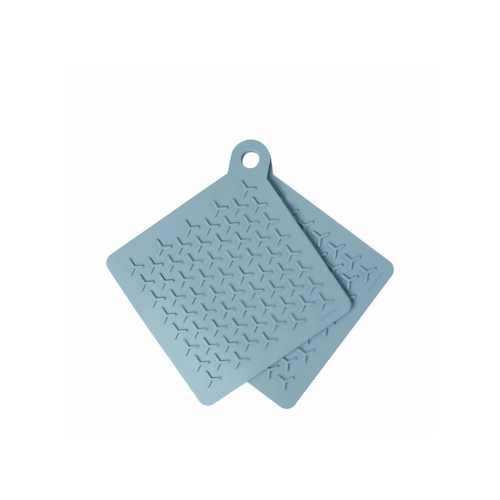 Blomus FLIP Sharkskin edényalátét - 2-es készlet. A hőálló szilikon betétek csúszásgátló felületű, fülekkel rendelkeznek. Feltűnő bumeráng design. Könnyen tisztítható - mosogatógépben mosható. Szilikonból készült, kiváló minőségű lakberendezési kiegészítő.