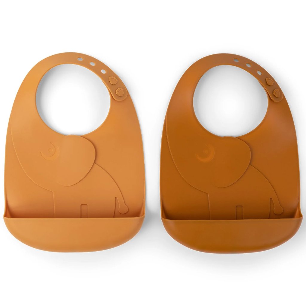 Gyerek előke PEEKABOO ELPHEE, 2 db szett, narancssárga, szilikon, Done by Deer