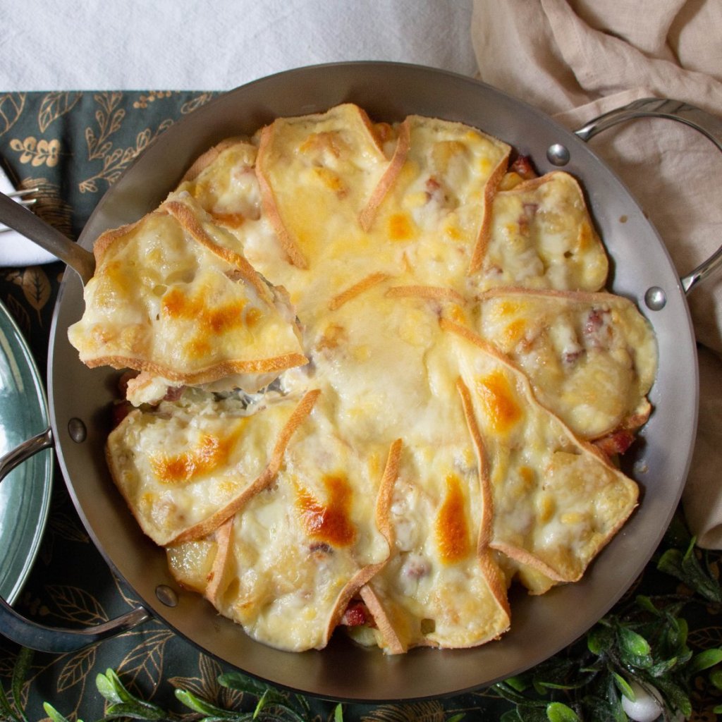 - a két praktikus, szegecselt fogantyúnak köszönhetően a főzőlapról könnyen átvihető közvetlenül a tálalóasztalra