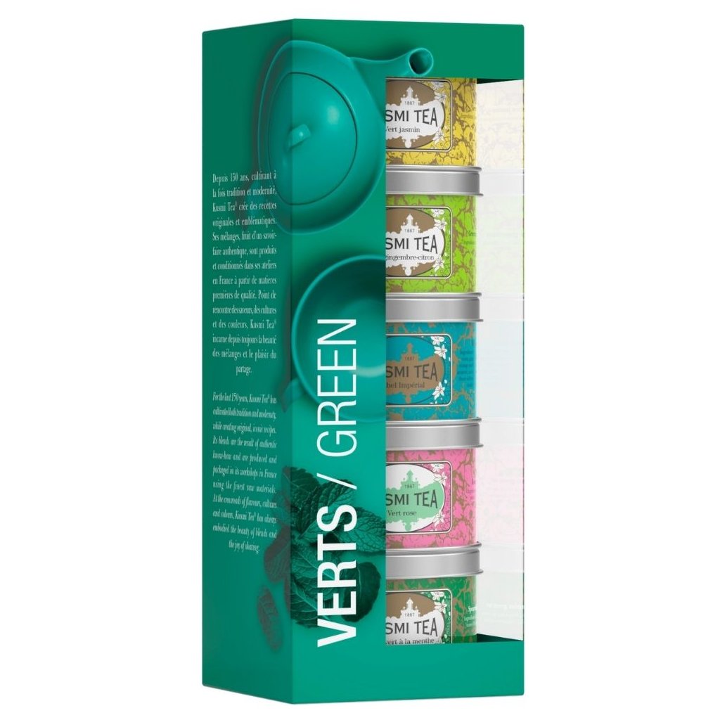 Teáskészlet ZÖLD TEÁK, 5 db szett zöld tea doboz 25 g, Kusmi Tea