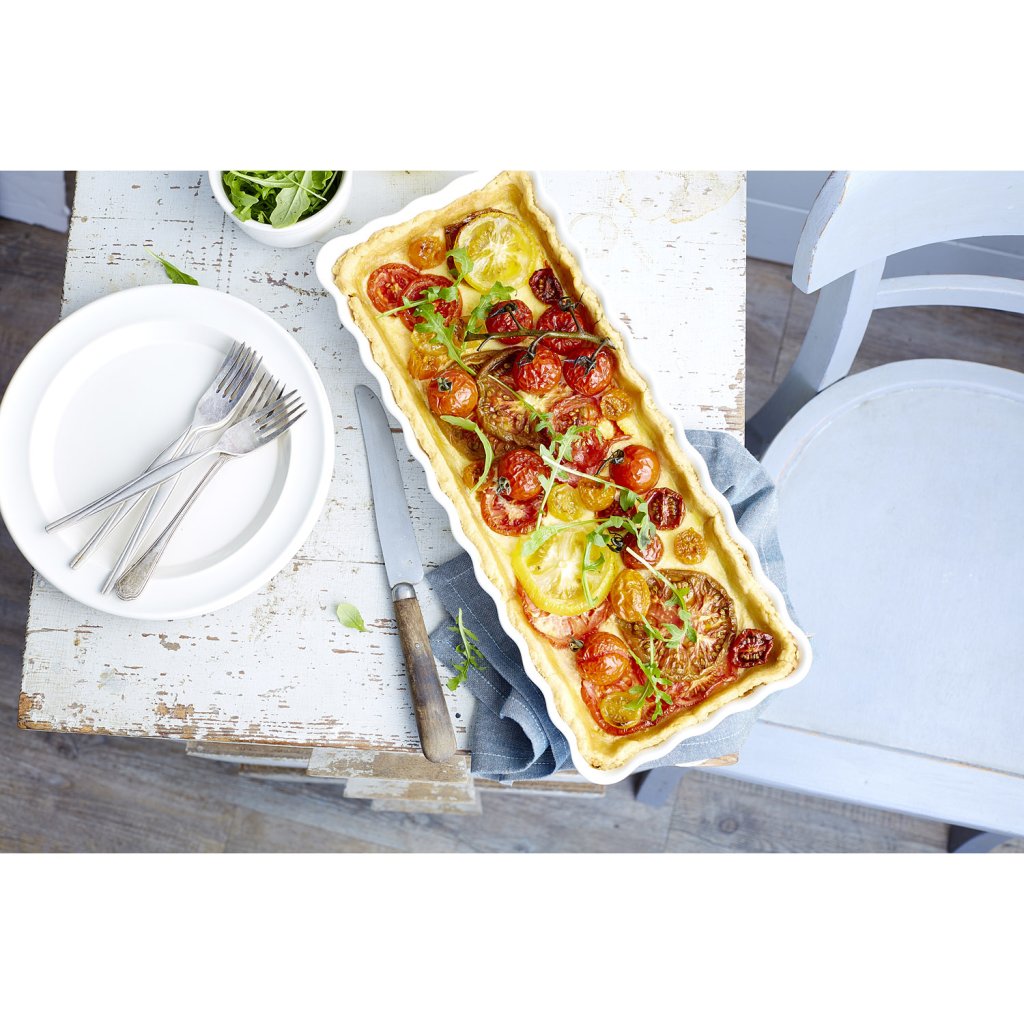 Próbáljon ki szokatlan formákat a sütéshez! Ez a téglalap alakú kalácsforma különféle édes és sós tésztához egyaránt használható. Elsőosztályú kerámiából készül, amely kiváló hővezető tulajdonságokkal rendelkezik. Praktikus tulajdonságának köszönhetően nem csak sütéshez, de különféle ételek tálalásához is használható, hiszen az ételeket sokáig melegen tartja. Az edényfal és az edényalj közötti lekerekített átmenetnek köszönhetően könnyedén kiemelhetjük a kalácsot és az ételt a formából.