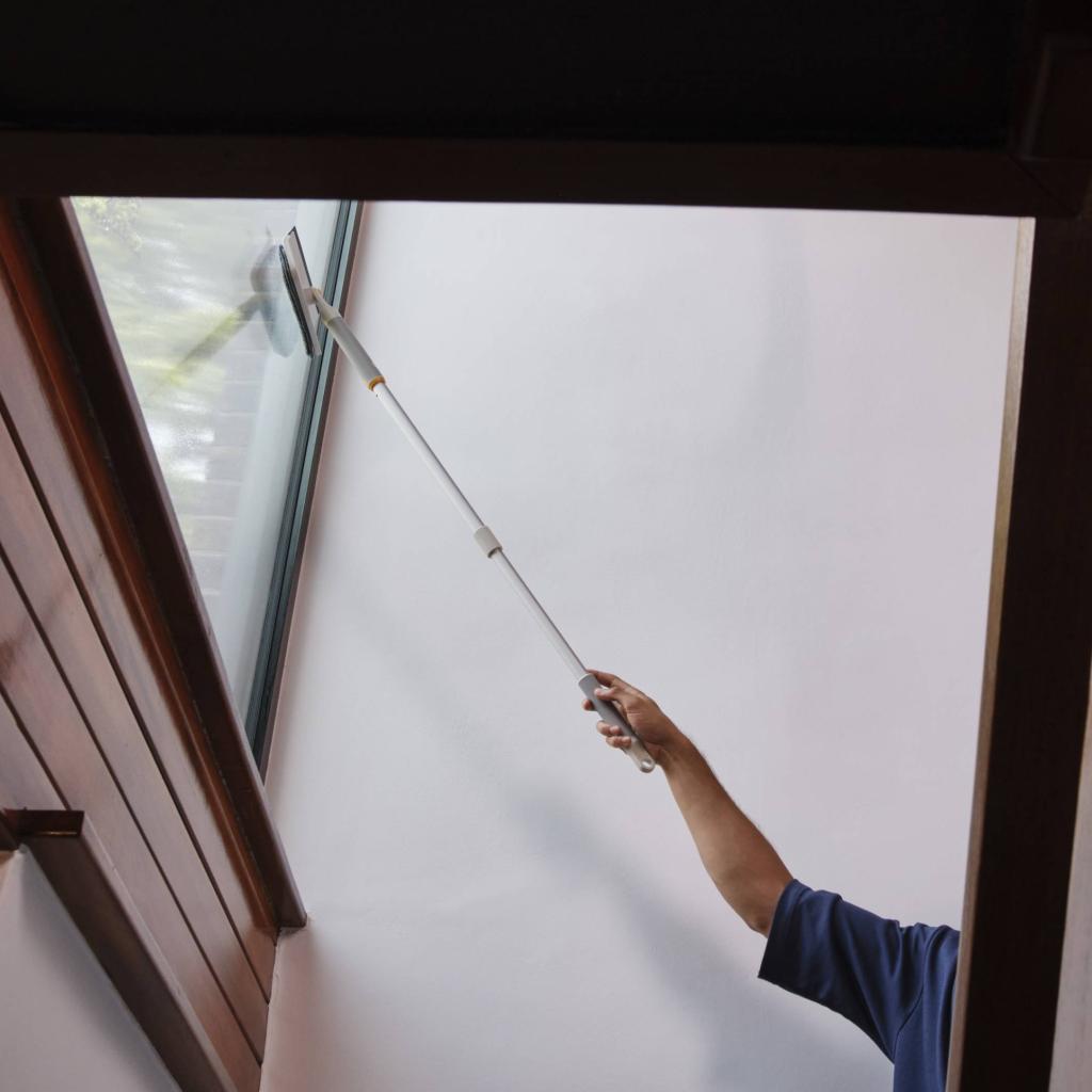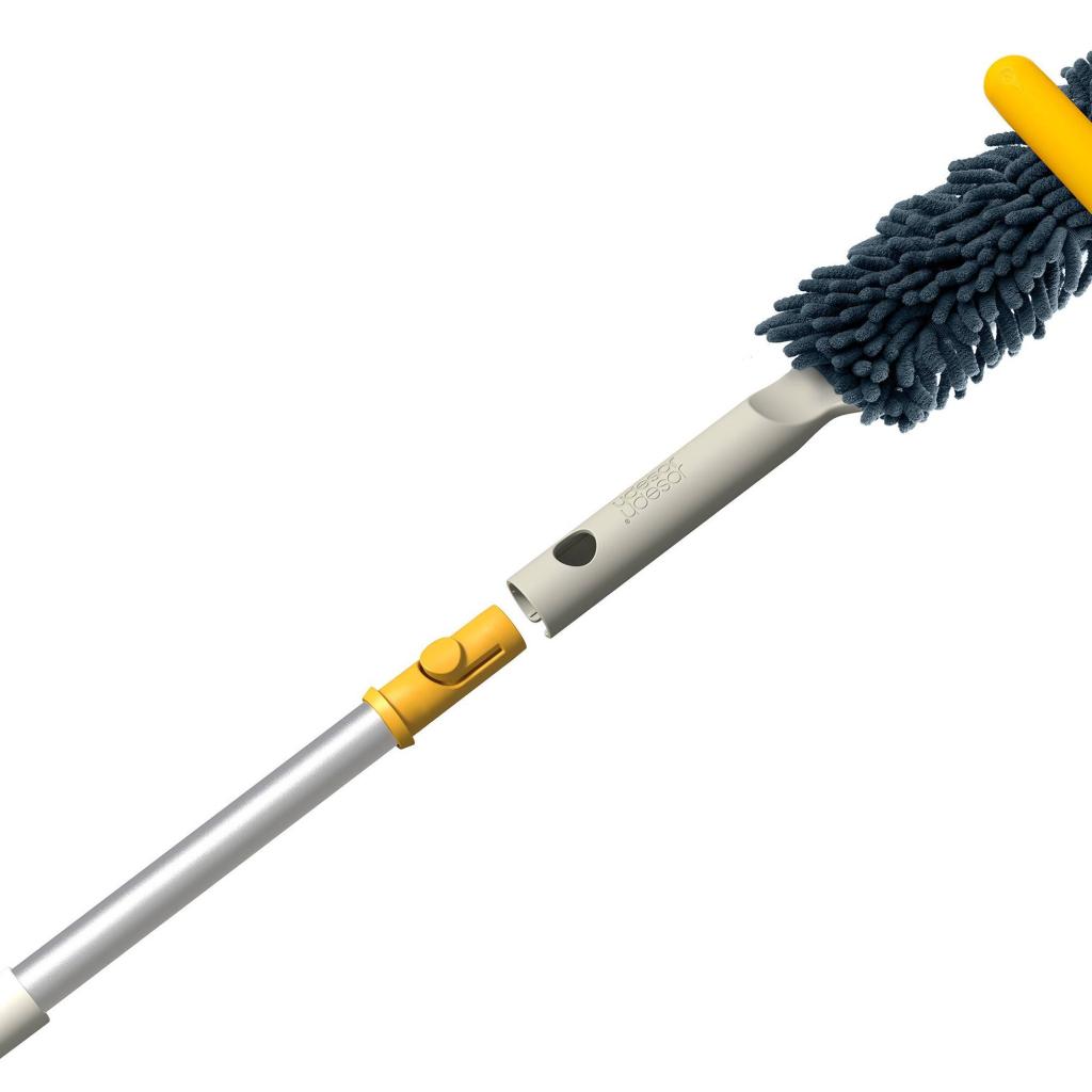 - Lehetővé teszi a könnyű elérést a mennyezetek, ablakok felső része, magas szekrények vagy távoli sarkok eléréséhez, anélkül, hogy létrára lenne szükség.