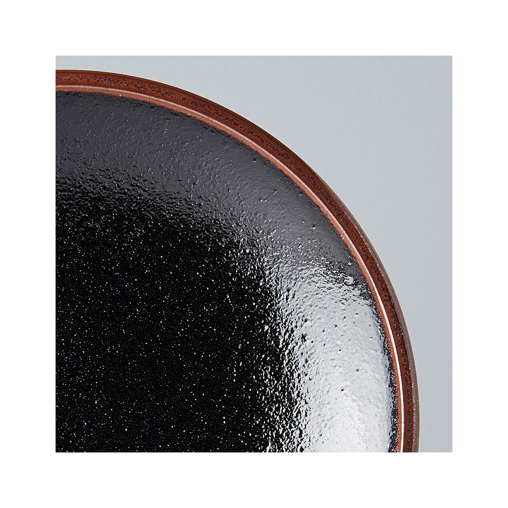 Tenmokku kolleció lapos előétel tányérja a MIJ gyártótól tartós természetes kerámiából kézzel készül, nem tartalmaz káros szennyeződéseket vagy nehézfémeket. Japán mesterek készítik, hagyományuk a 12. századra nyúlik vissza. A festék kiváló minőségű, nem hámlik le, és nem tartalmaz káros anyagokat sem.