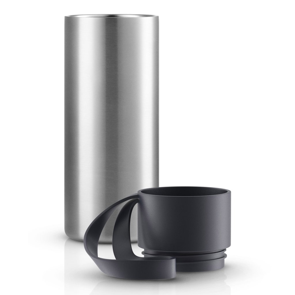 A dán Eva Solo társaság duplafalú To Go rozsdamentes acélthermo bögréje műanyagból és matt rozsdamentes acélból készül. A vákuumnak köszönhetően a thermo bögre izolálja, és sokáig melegen tartja a kávét, teát. Nem kell félnie, a bögre 100%-osan záródik, ezért hordozhatja kézitáskájában, hátizsákjában, tárolhatja az autóban, vagy hozzáerősítheti biciklijéhez. A praktikus szilikonpánt megkönnyíti a thermo bögre hordozását.