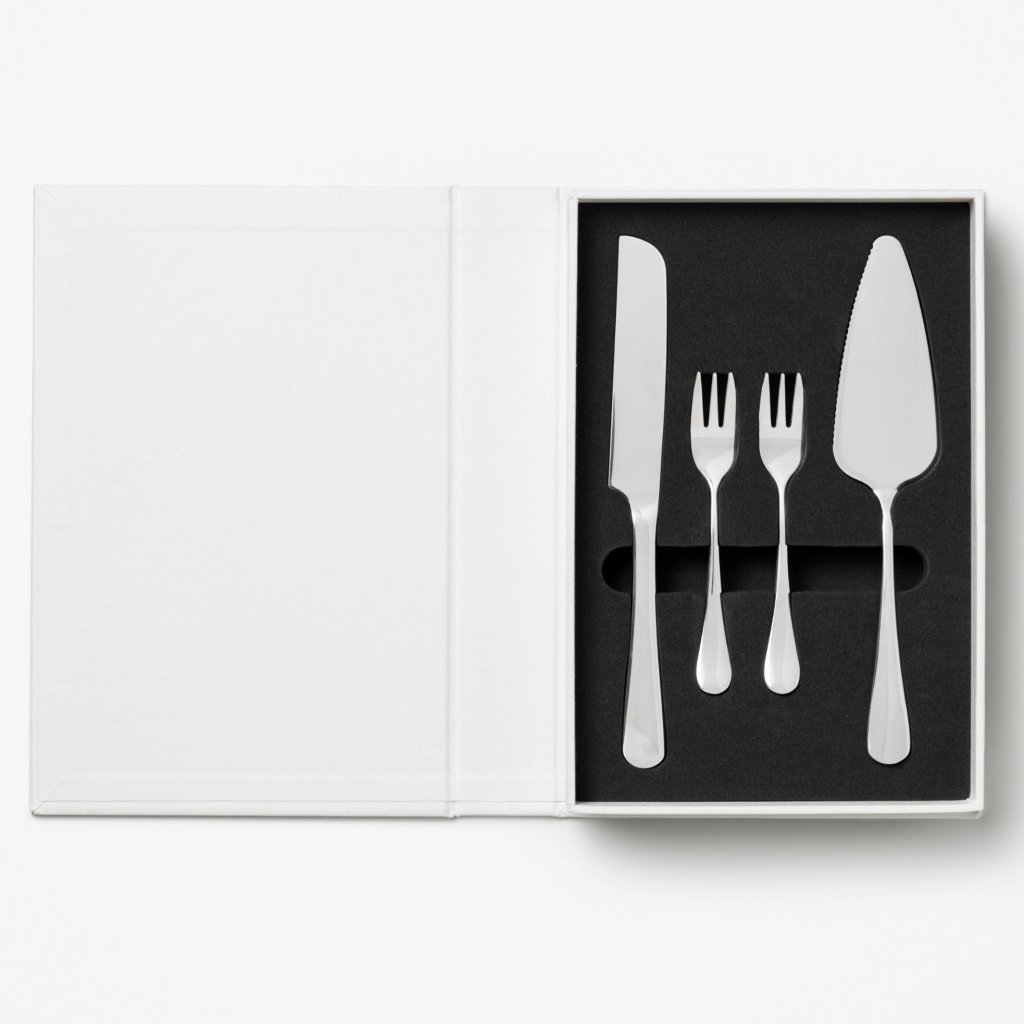 - Az exkluzív süteménytálaló készlet THE ESSENTIALS elegánsan egy könyvszerű dobozba van csomagolva, amely stílusosan kiegészíti bármely konyhát.