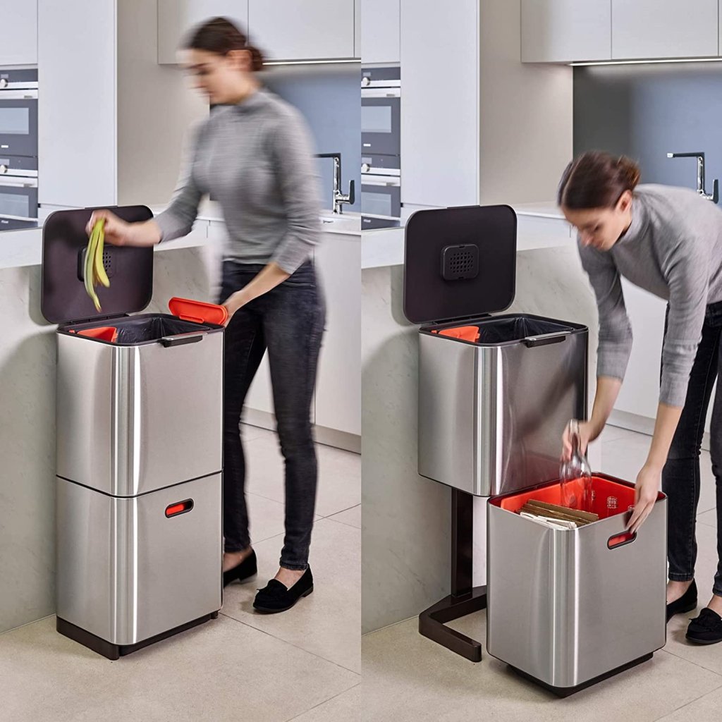 Hulladékgyűjtő TOTEM MAX 30060 60 l, a hulladék szétválogatásához, rozsdamentes acél, Joseph Joseph