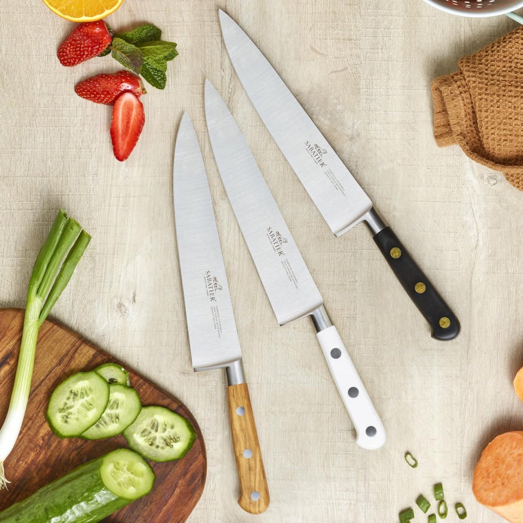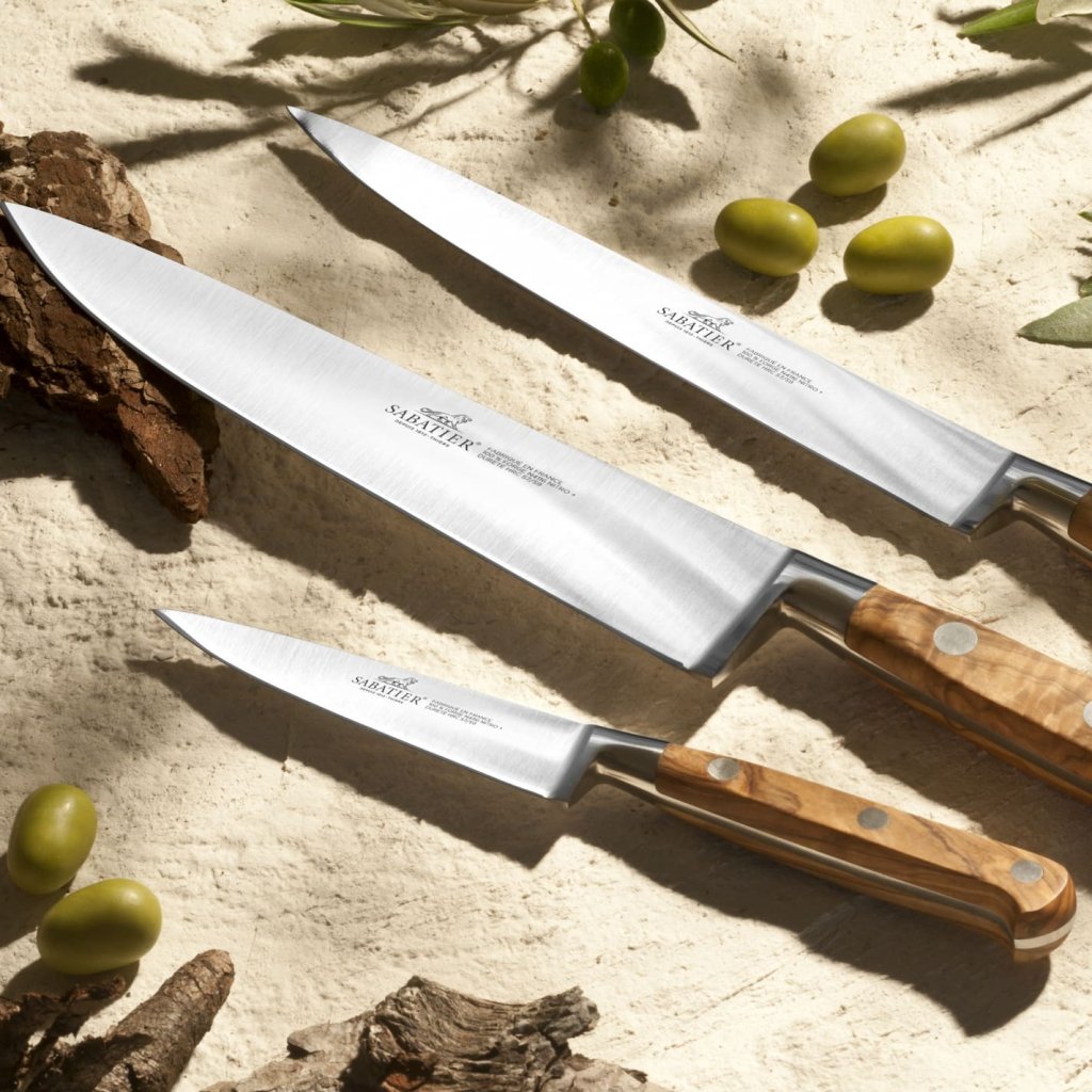 - A hajlított hegyű kés sziluettje kiemeli a márka francia eredetét és hagyományos kézművességét Lion Sabatier