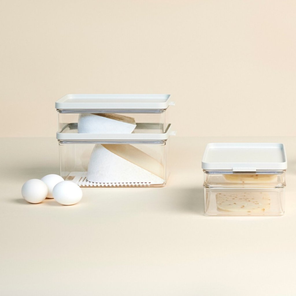 - a kompakt méretek és az egymásra helyezhetőség helyet takarítanak meg a hűtőben, és áttekinthetőséget biztosítanak a hűtőtérben