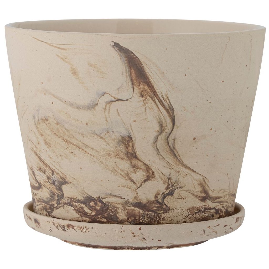 Virágcserép és csészealj STACY 21 x 17 cm, barna, kőedény, Bloomingville