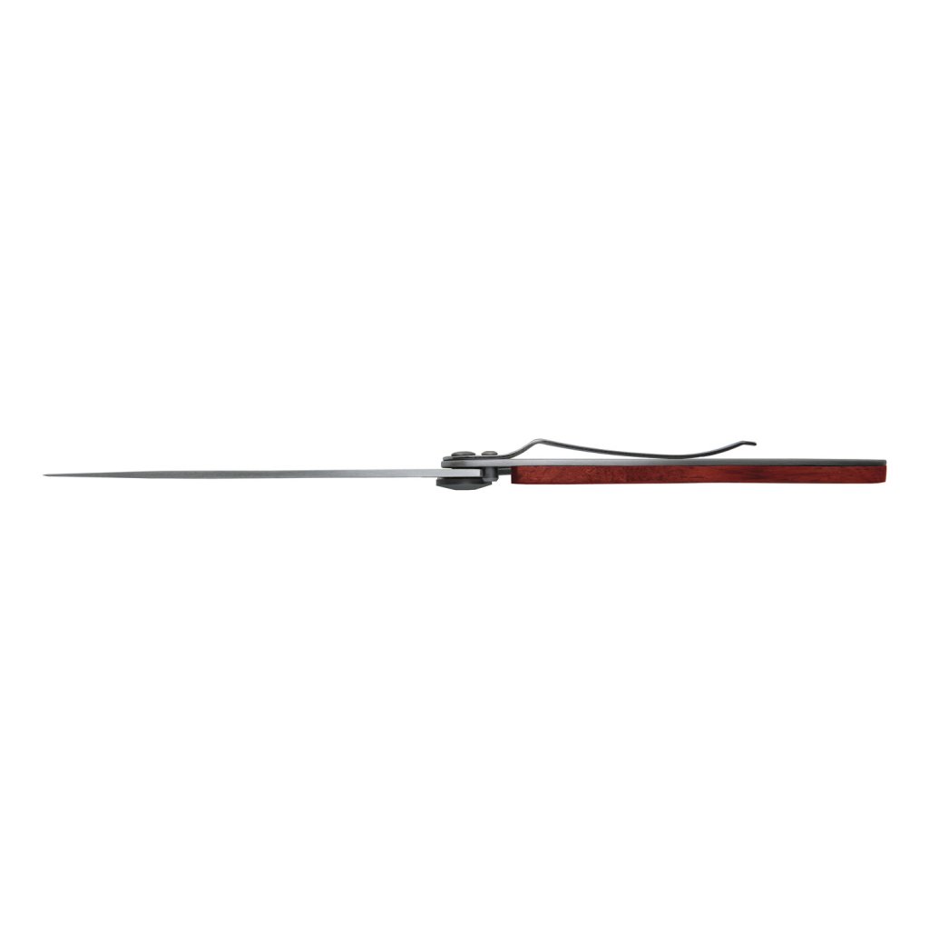 Ez az ultrakönnyű zsebkés kiváló minőségű nemesacélból készül. A „liner lock” típusú zárnak köszönhetően használata biztonságos és egyszerű. A késnek matt felülete van, markolata trópusi paliszanderfából készül, amely egy kifejezetten formatartó és szilárd fa. A kés nyelén egy praktikus klipsz is található, ennek köszönhetően akár a nadrágszíjra, vagy a nadrágzsebre csíptetve is hordható, de akár bankjegyek is kapcsolhatók hozzá.
