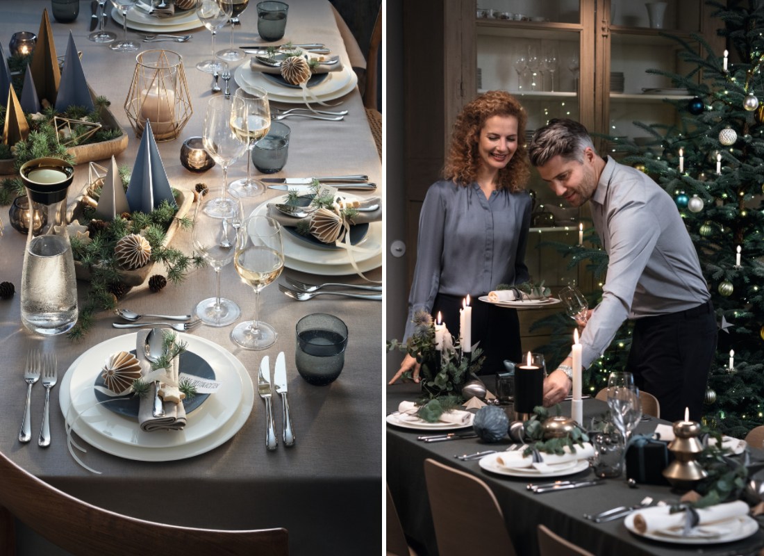 A szürke-kék kombinációnak igazán ünnepi és fényűző jelleget adhat, ha néhány arany vagy ezüst színű hangsúlyt ad hozzá. Díszek, evőeszközök vagy díszek a fán.