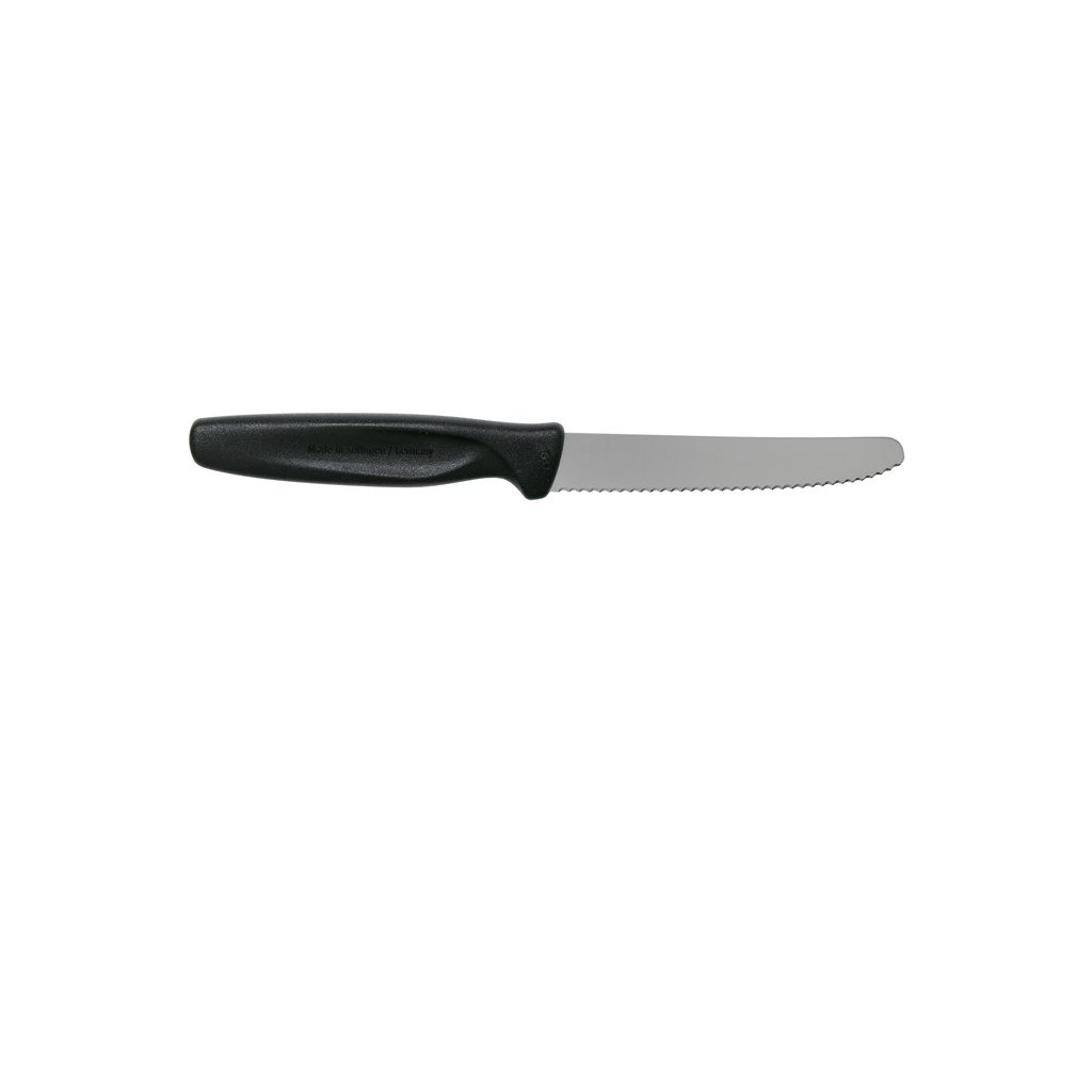 Ideális minden kisebb konyhai vágási munkához: paradicsom, zöldség és kemény héjú gyümölcs szeleteléséhez. Ez a sokoldalú kés a szárazkolbász, a zsemle és a sajt megmunkálásakor mutatja meg erősségeit.